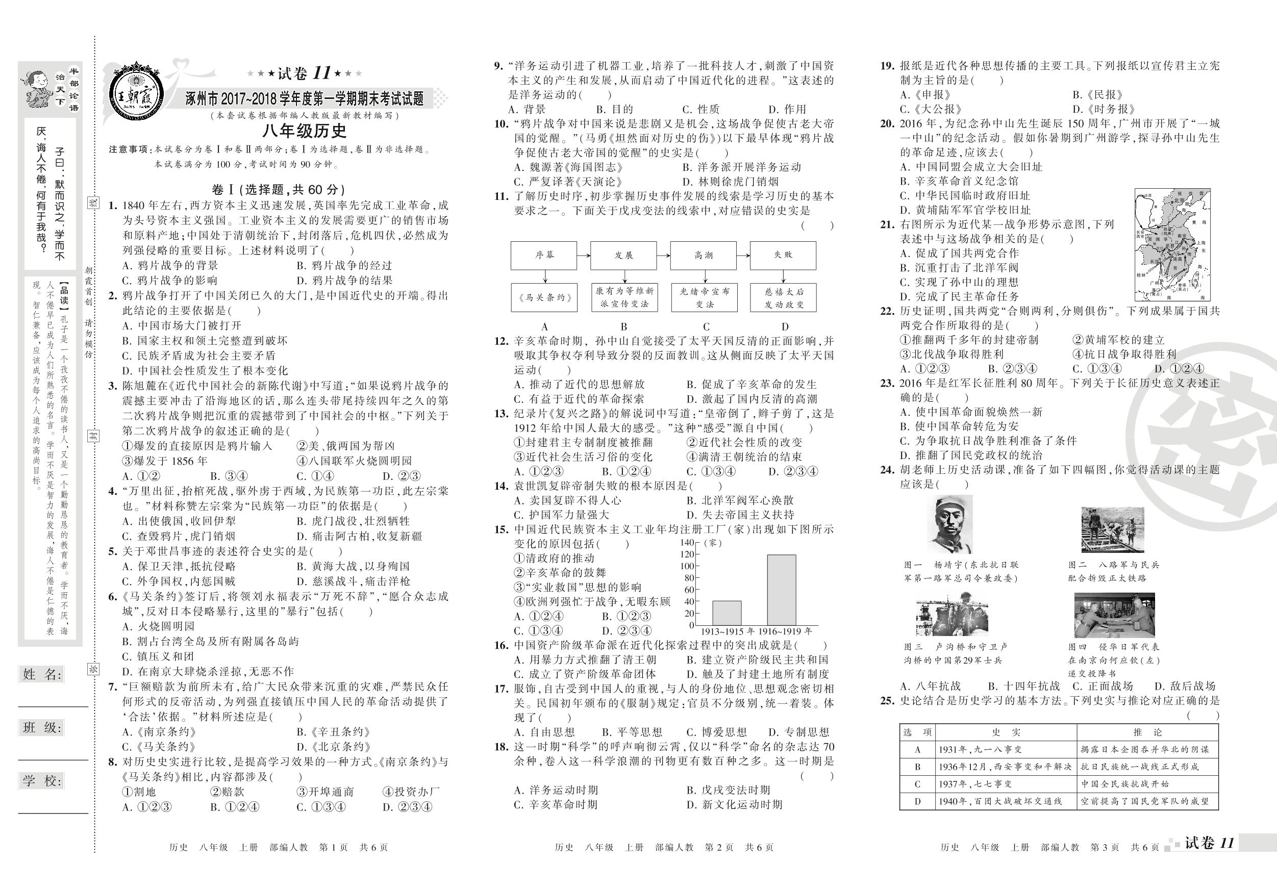 2017-2018学年第一学期涿州市八年级历史试卷(人教版)【11】
