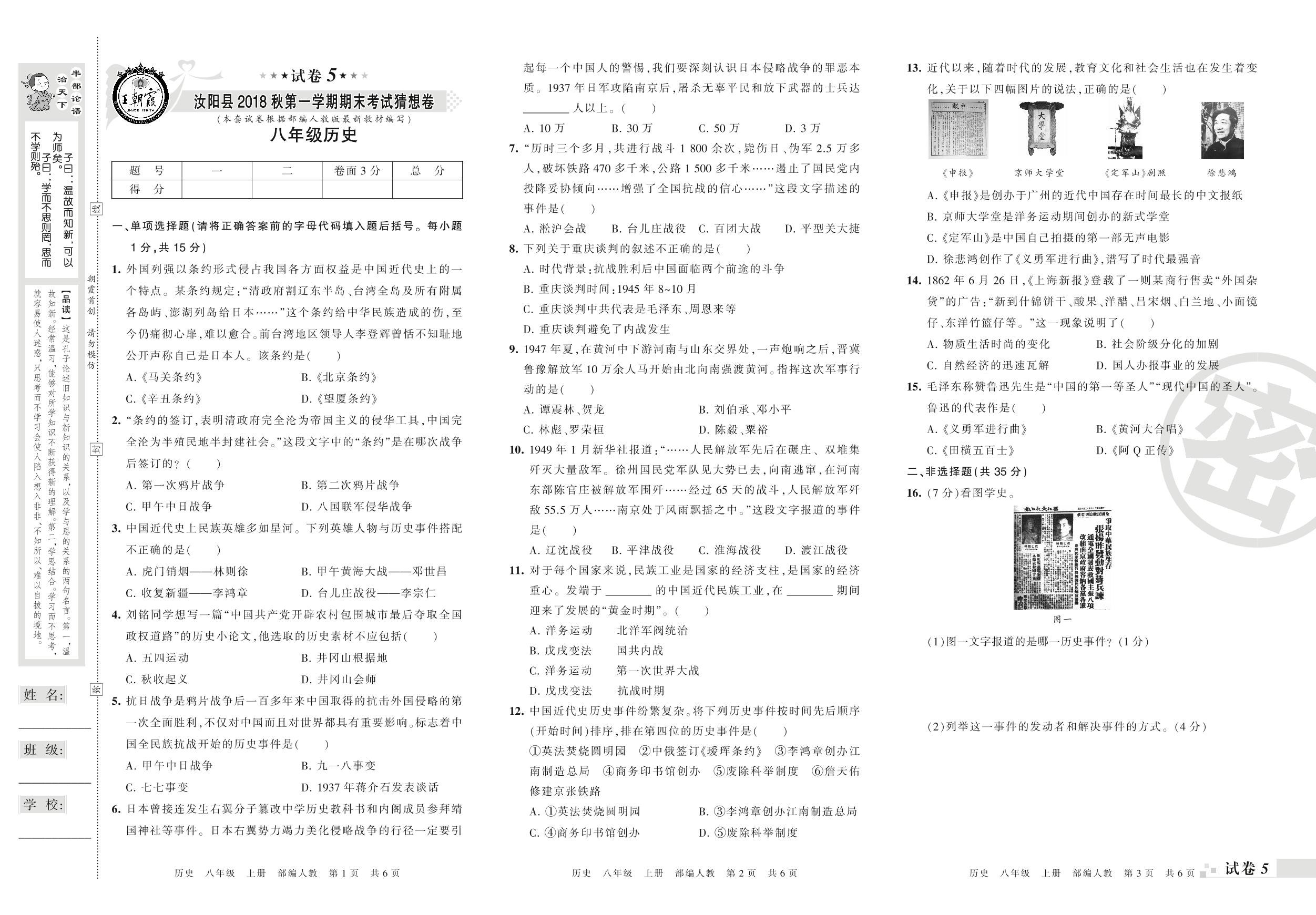 2017-2018学年第一学期洛阳市汝阳县八年级历史试卷(人教版)【5】