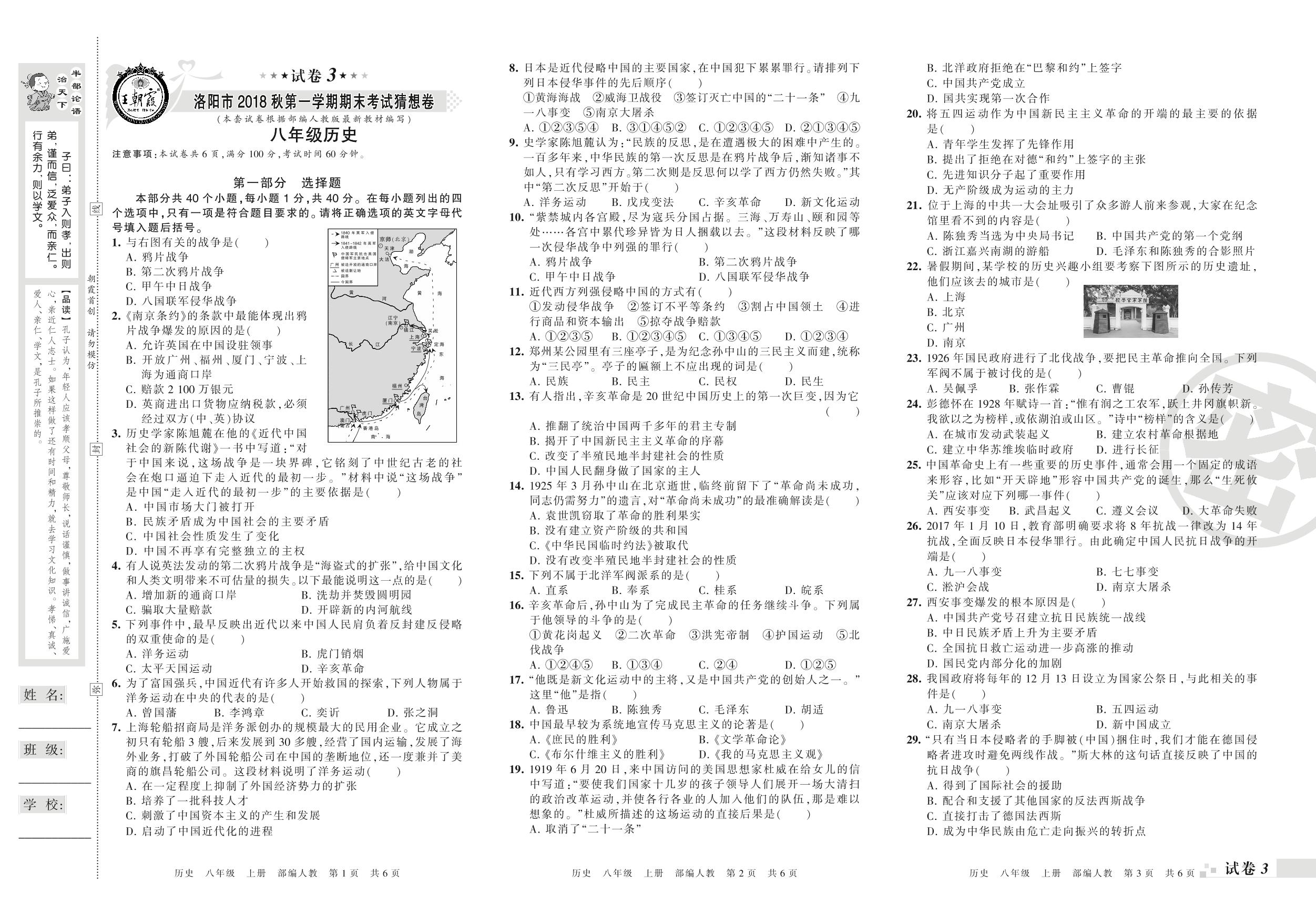 2017-2018学年第一学期洛阳市八年级历史试卷(人教版)【3】