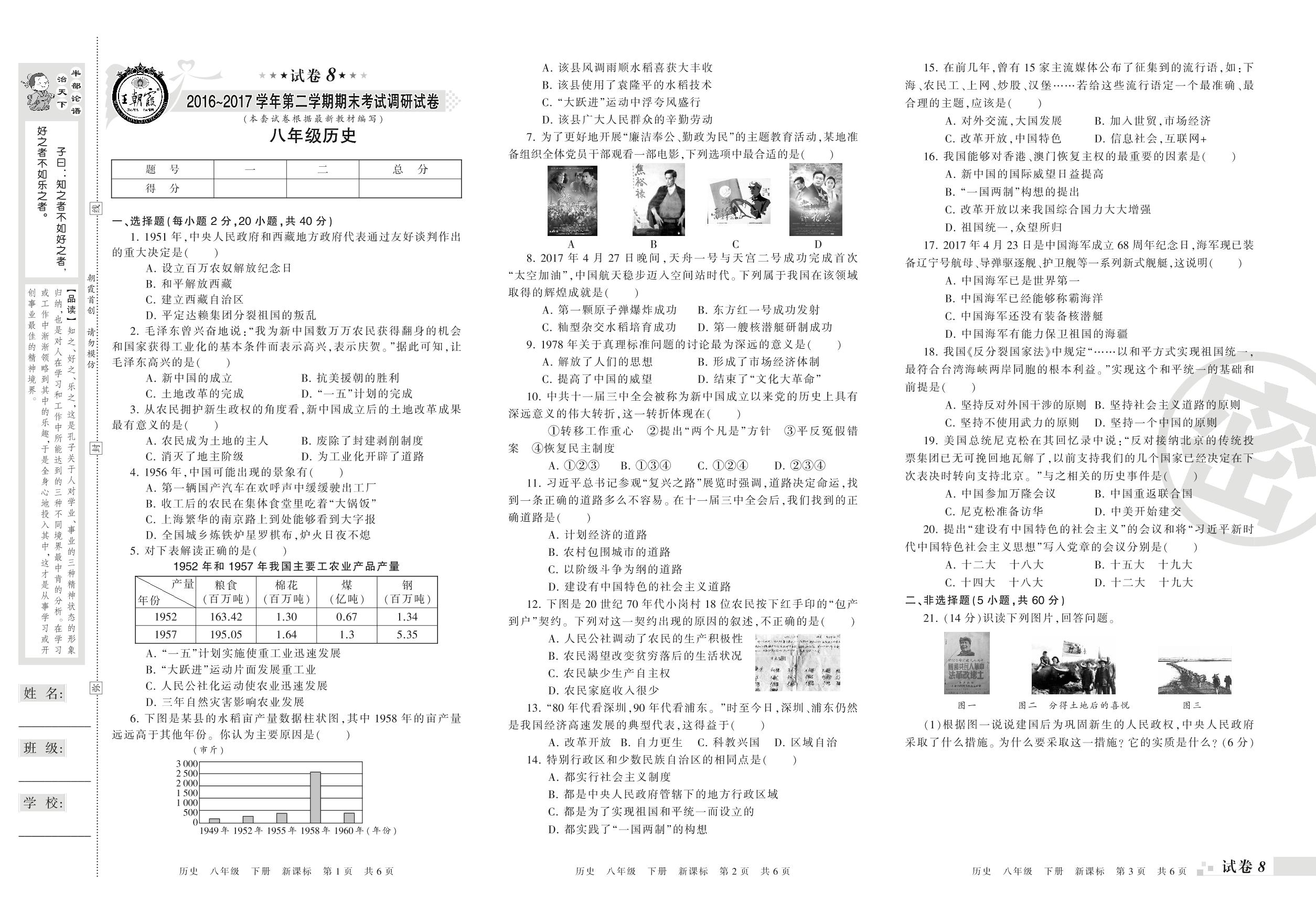 2016-2017学年第二学期期末考试调研试卷八年级历史(新课版)【8】
