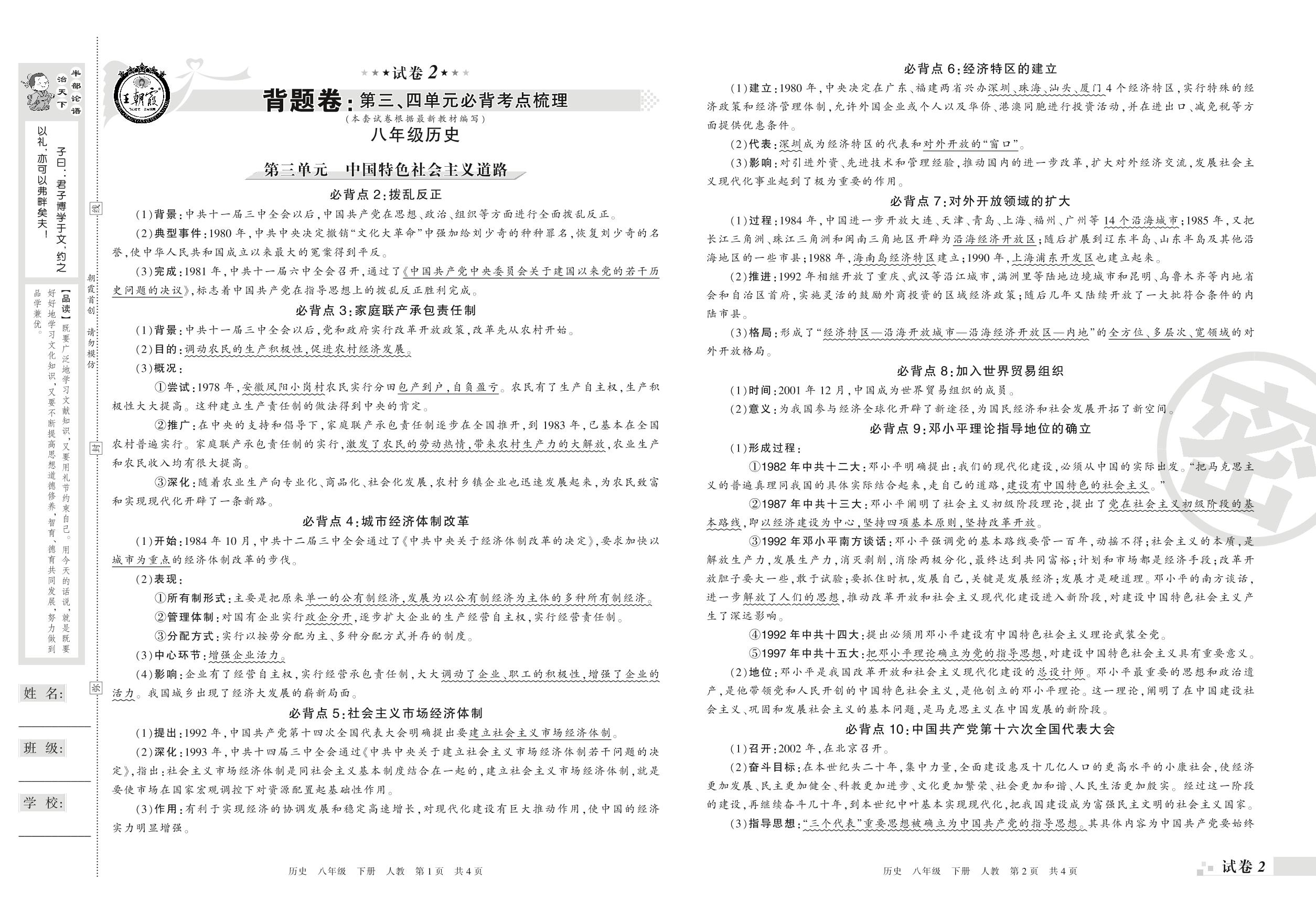 王朝霞期末背题卷——第三、四单元必背考点梳理八年级下册历史(人教版)_R220122102958100【2】