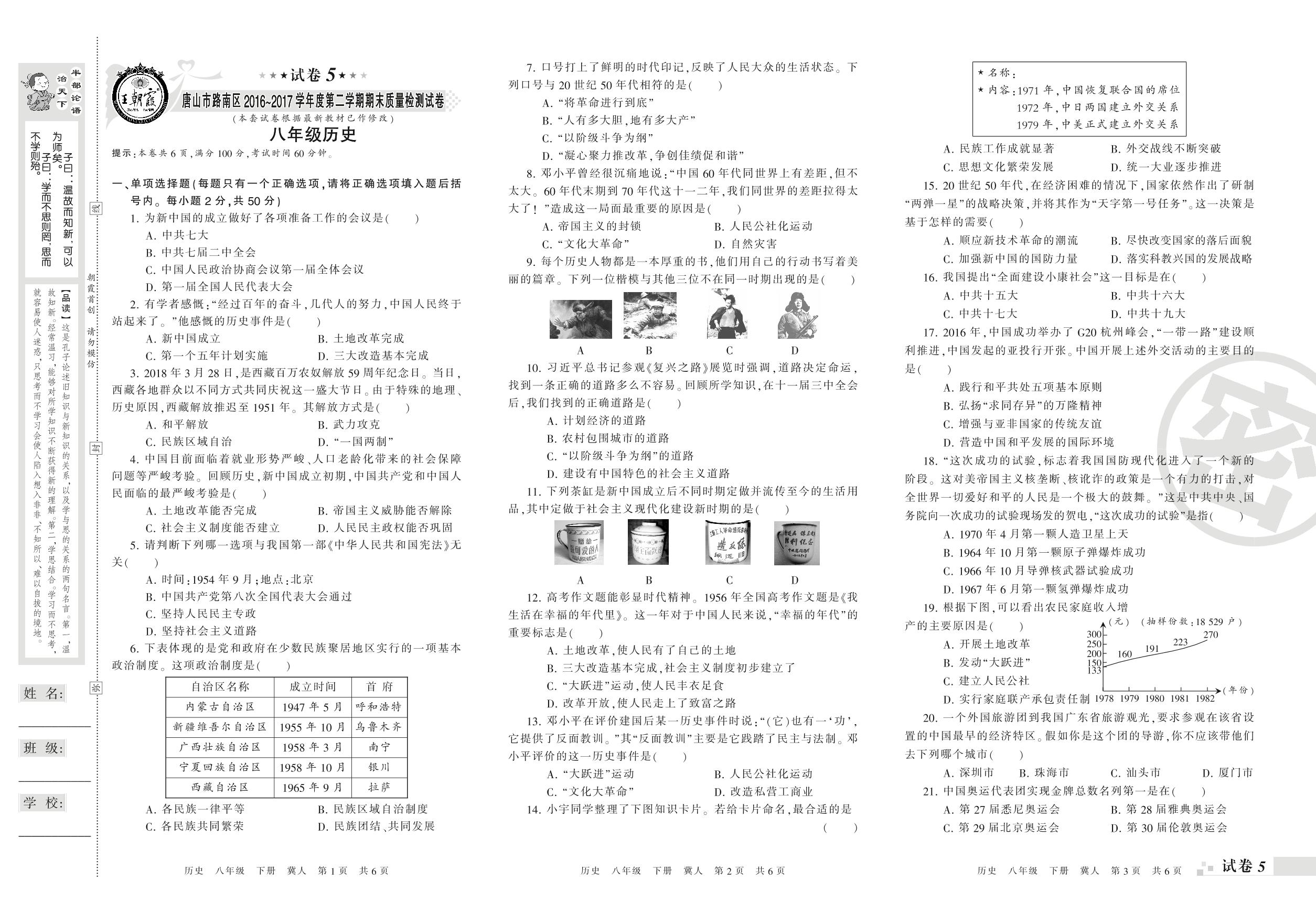 2016-2017学年第二学期唐山市路南区八年级历史试卷(冀人版)【5】