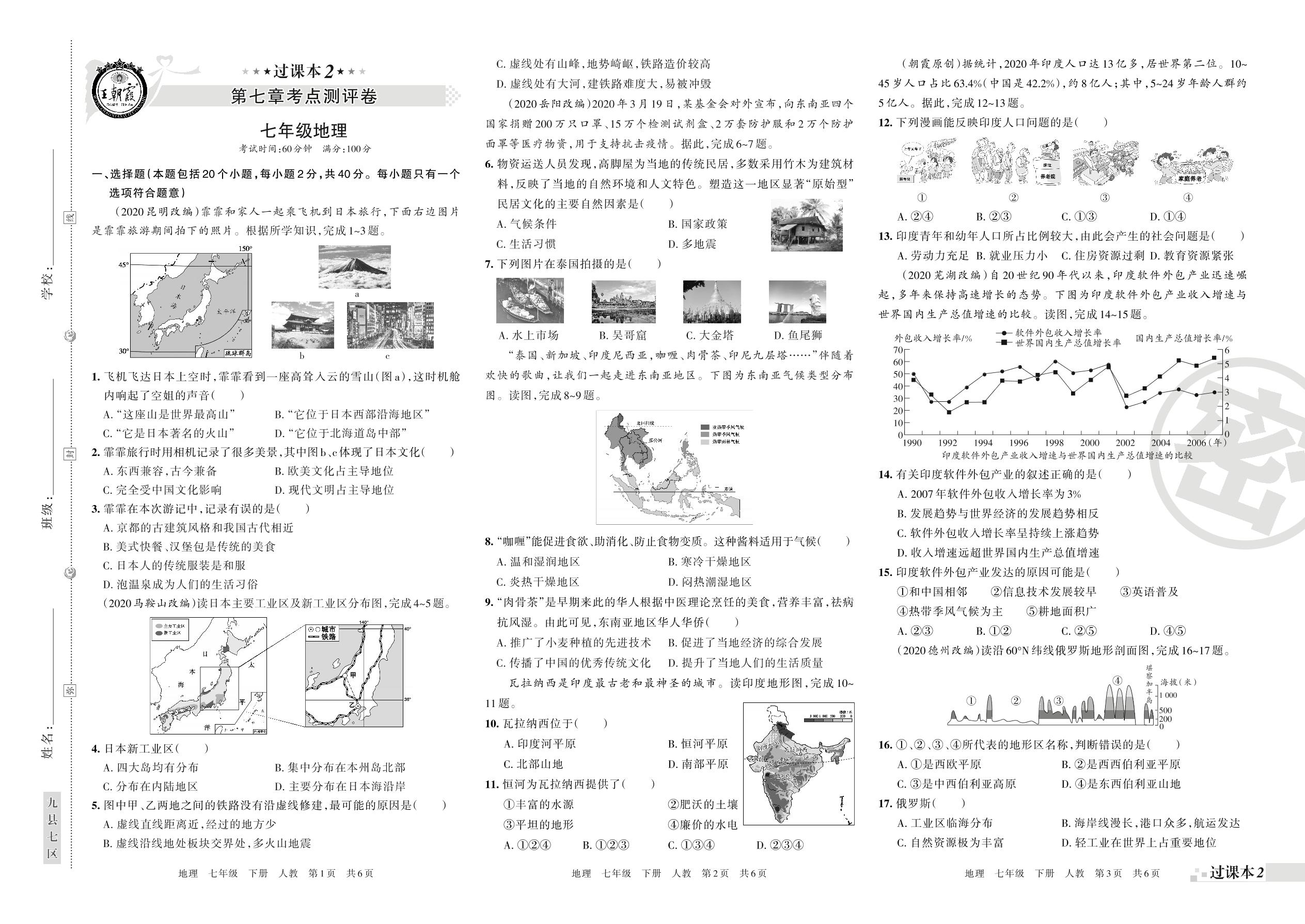 王朝霞期末过课本——第七章考点测评卷七年级下册地理(人教版)_R210810133446【2】