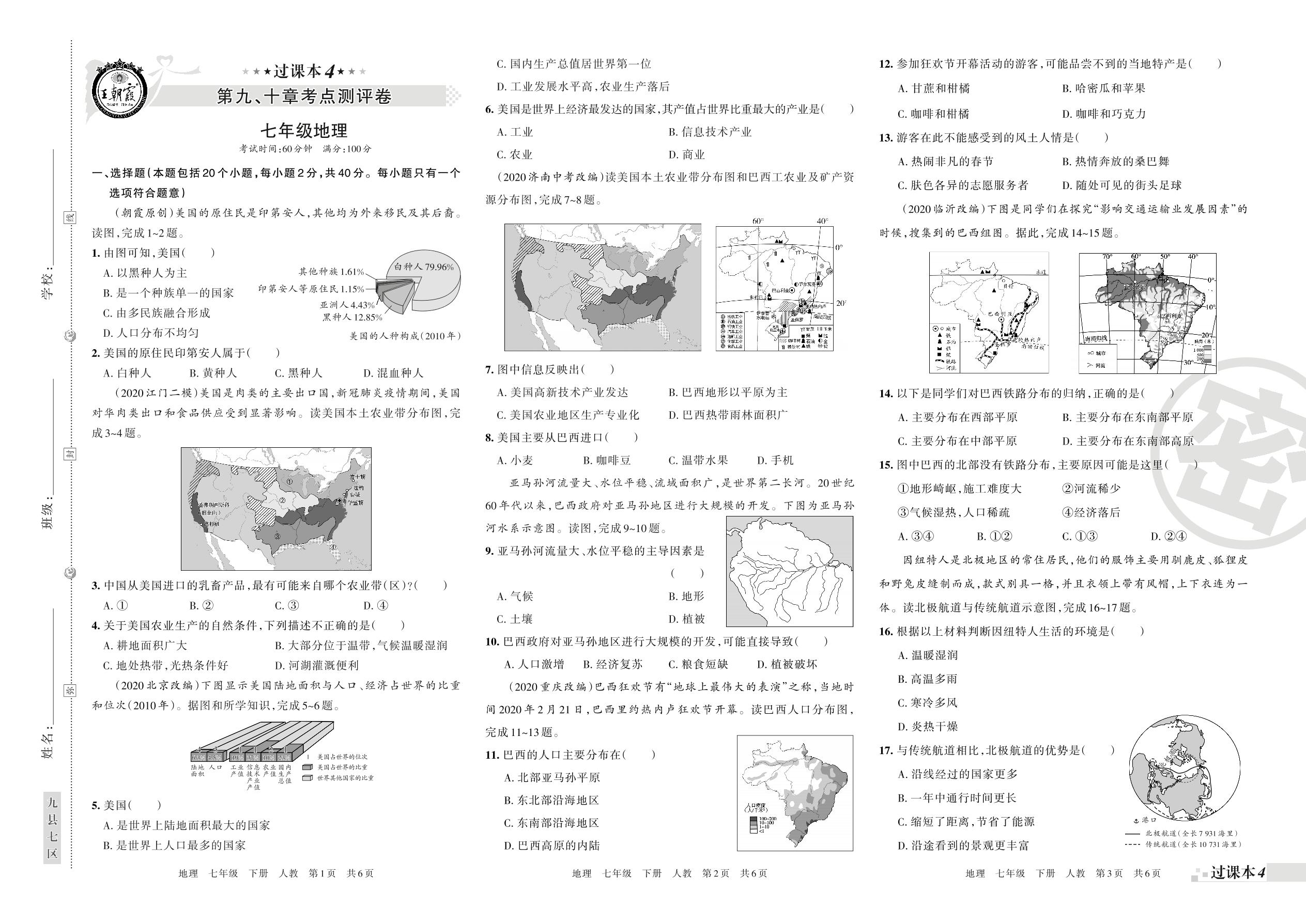 王朝霞期末过课本——第九、十章考点测评卷七年级下册地理(人教版)_R210810133504【4】