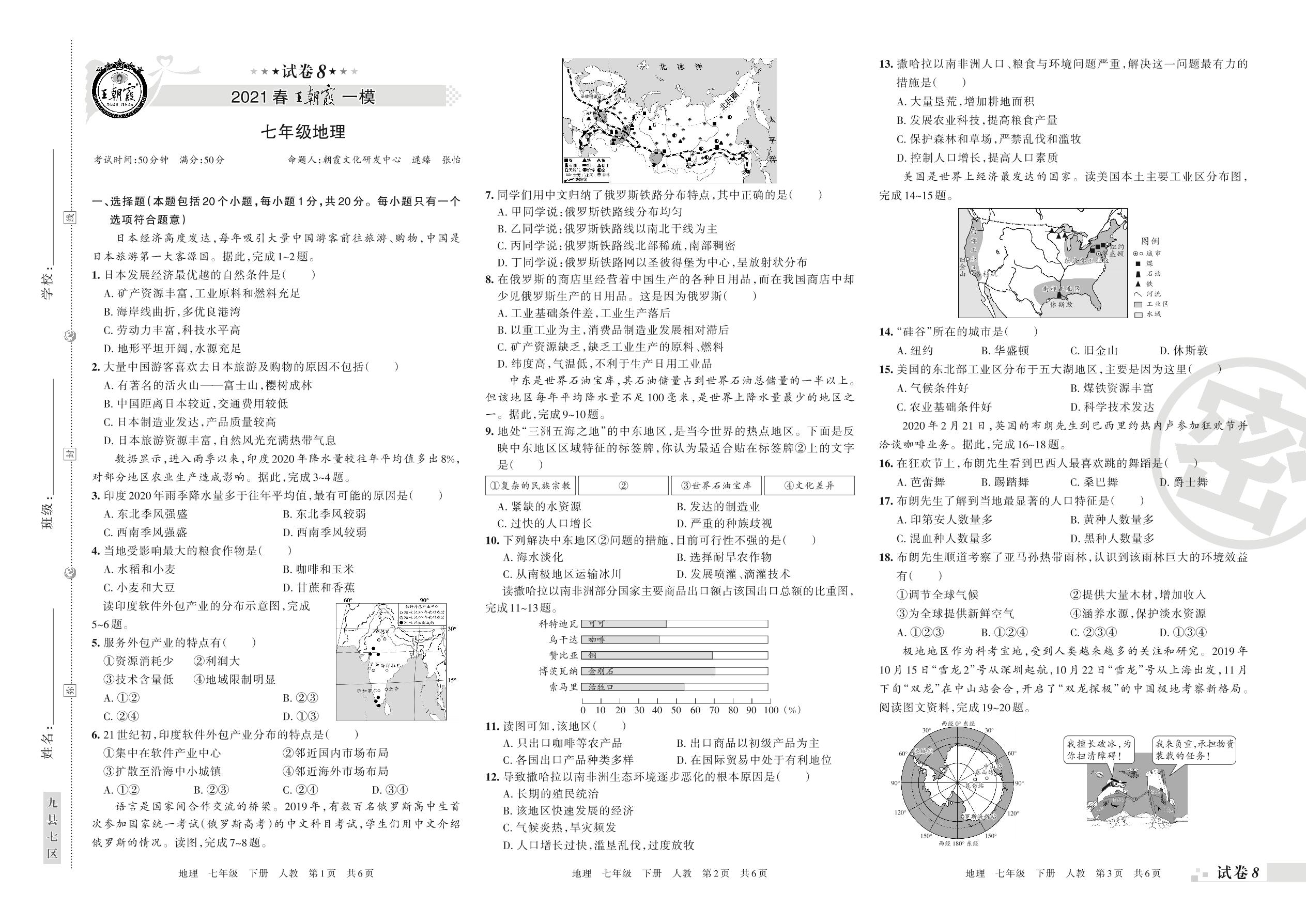 王朝霞期末模拟卷七年级下册地理(人教版)【8】