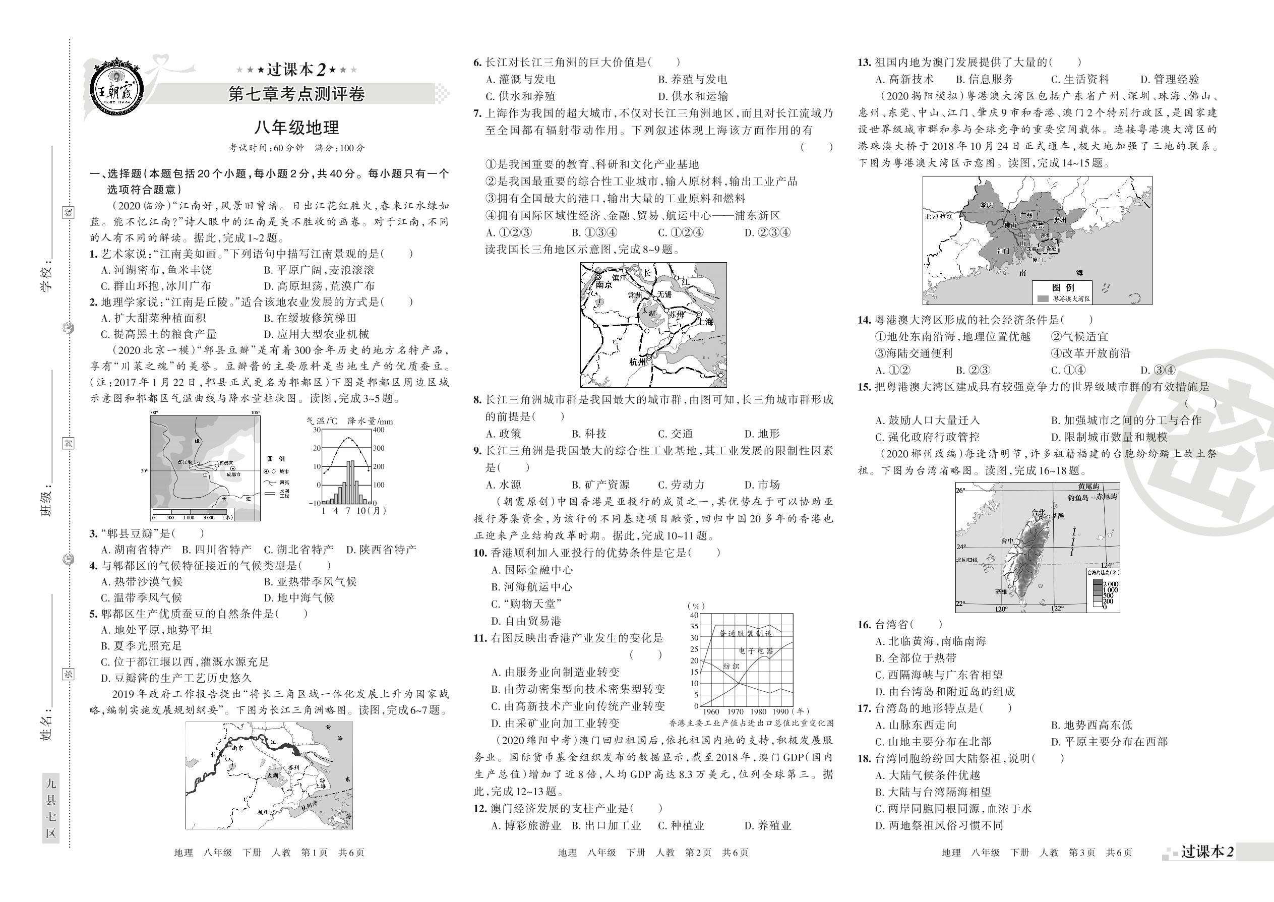 王朝霞期末过课本——第七章考点测评八年级下册地理(人教版)_R210810133640【0】