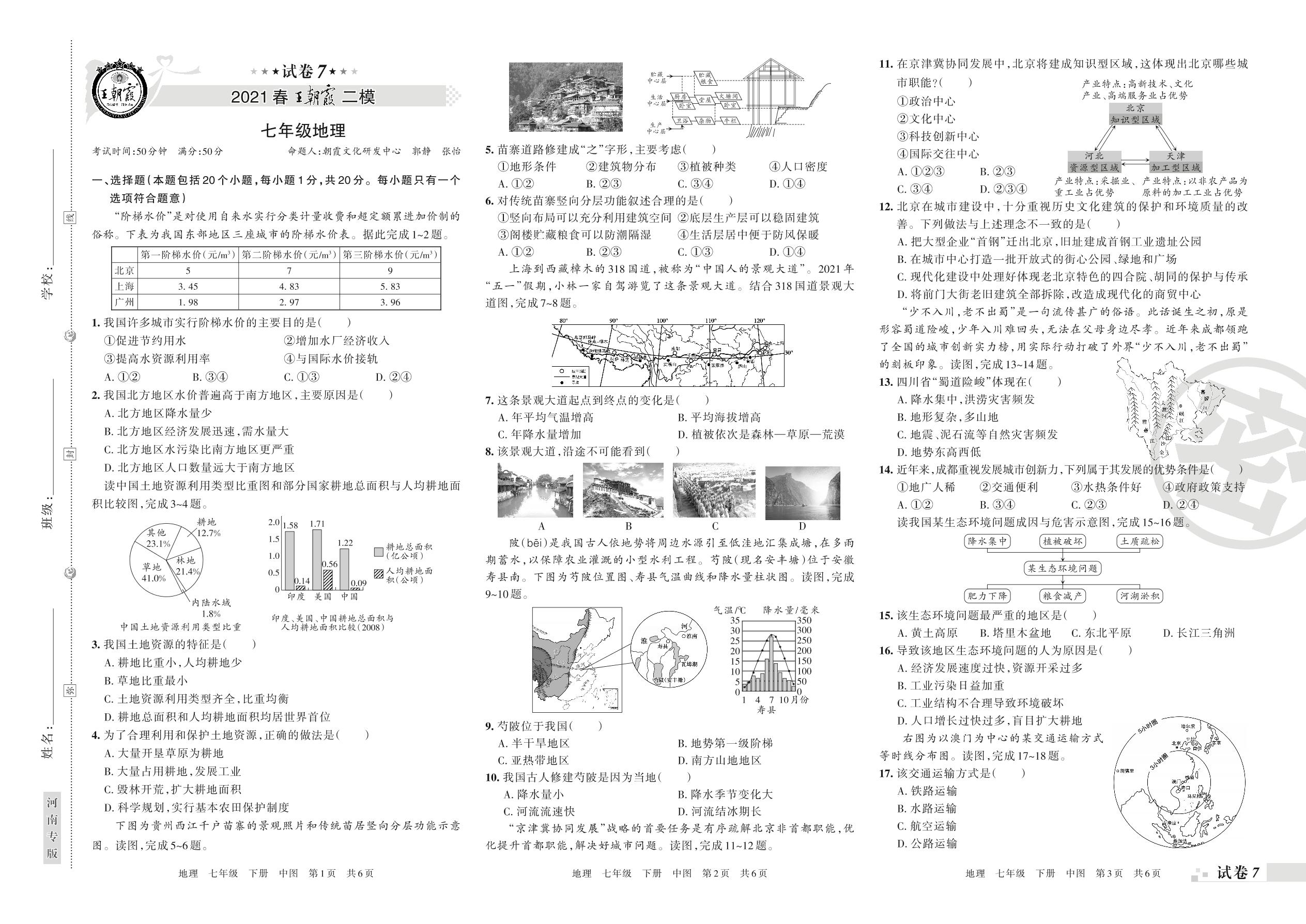 王朝霞期末模拟卷七年级下册地理(中图版)_R210810134027【7】