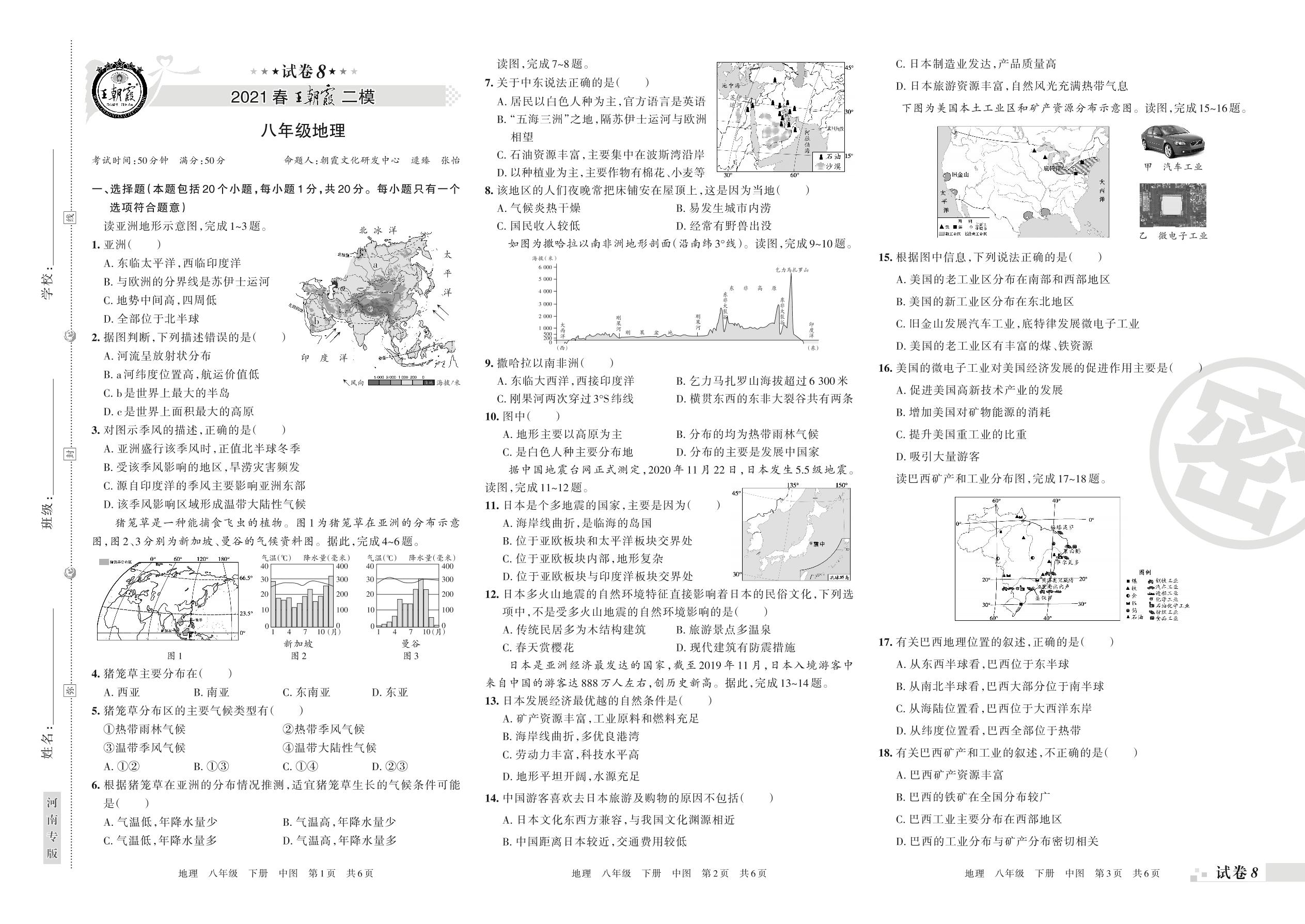 王朝霞期末模拟卷八年级下册地理(中图版)_R210810134236【8】