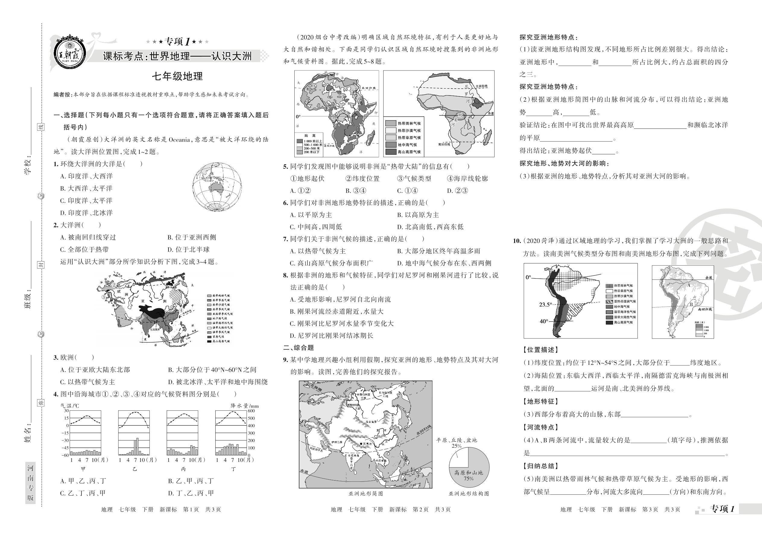 王朝霞期末专项卷——认识大洲、认识地区七年级下册地理(新课版)【0】