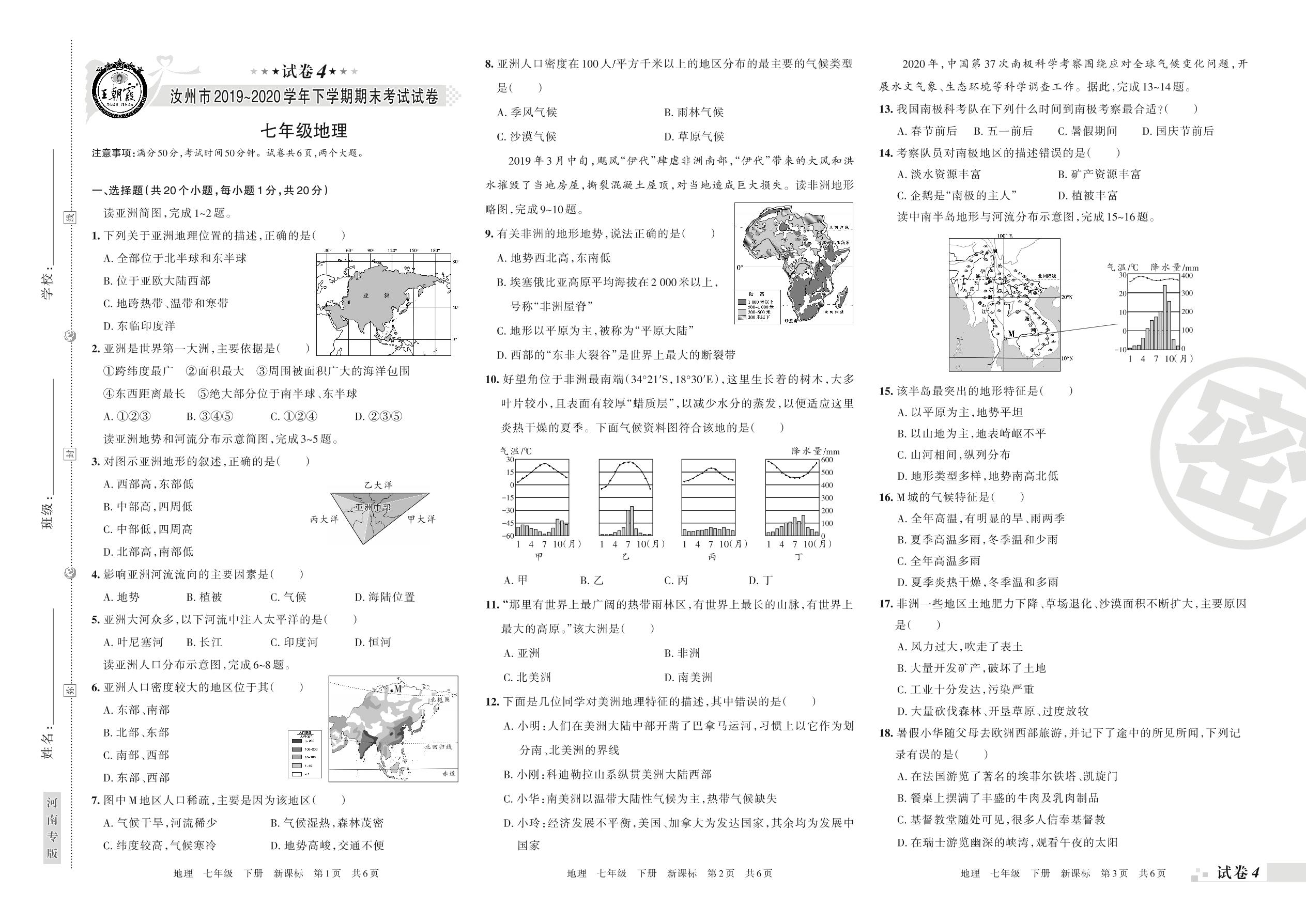 2019-2020学年第二学期汝州市七年级地理试卷(新课版)【4】