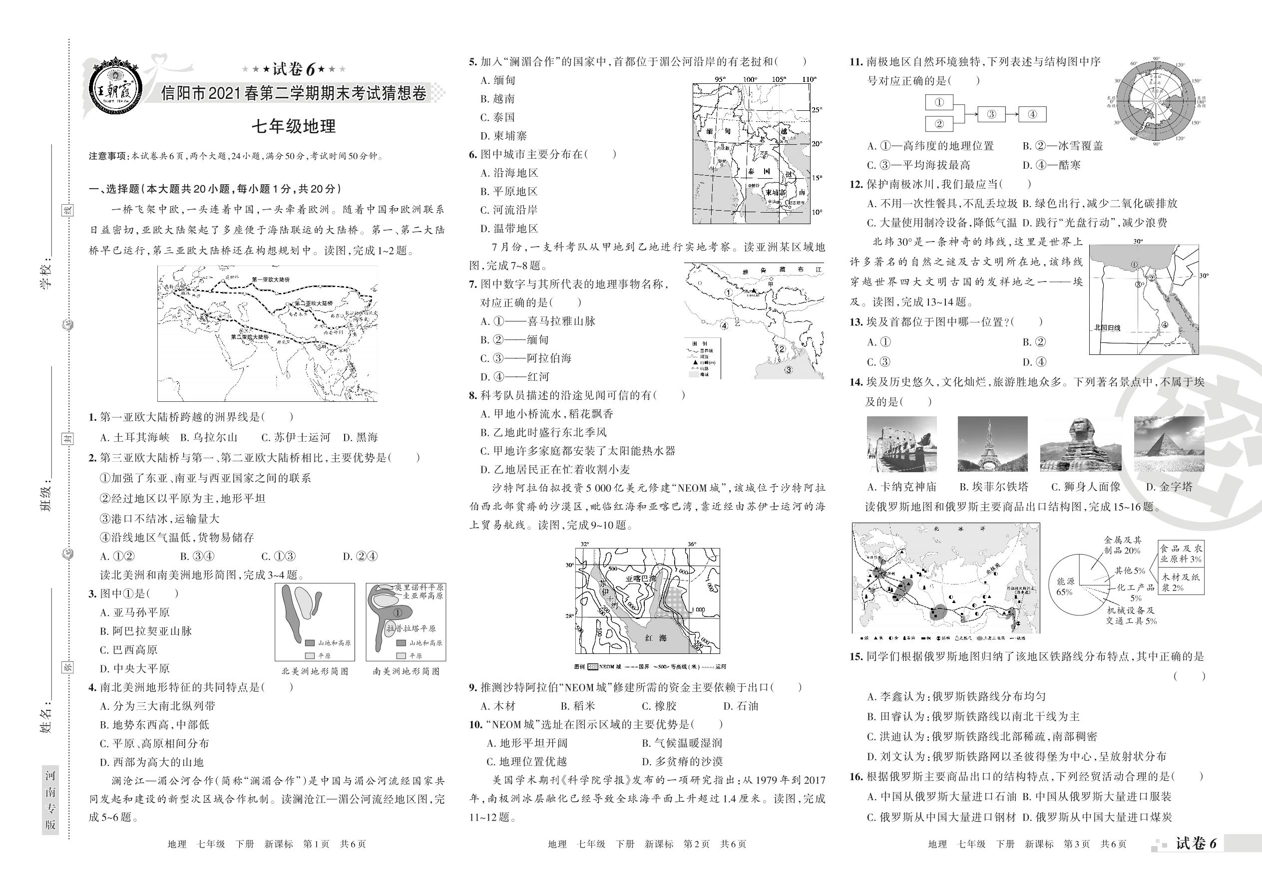 2020-2021学年第二学期信阳市七年级地理试卷(新课版)【6】