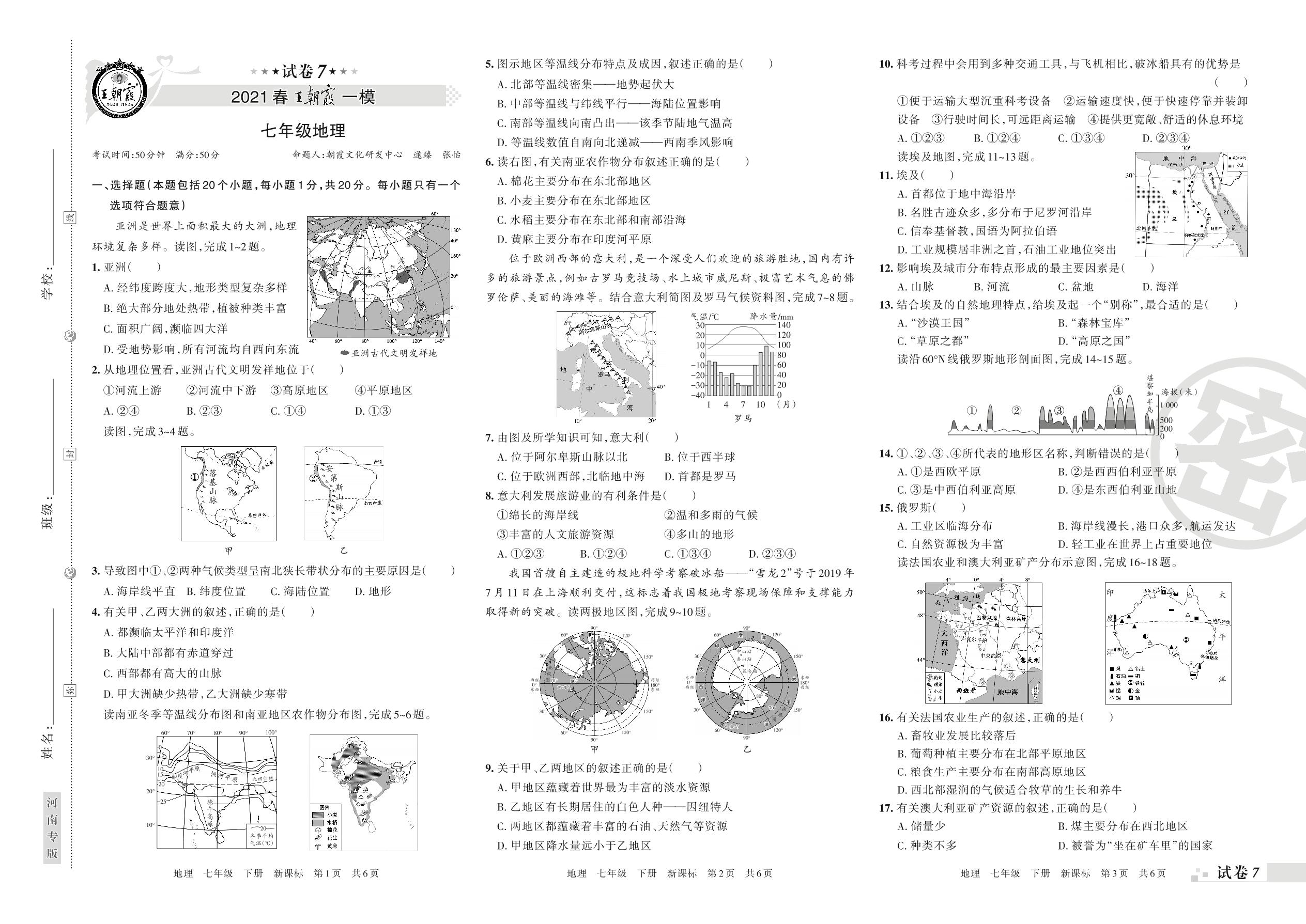 王朝霞期末模拟卷七年级下册地理(新课版)_R210810134443【7】