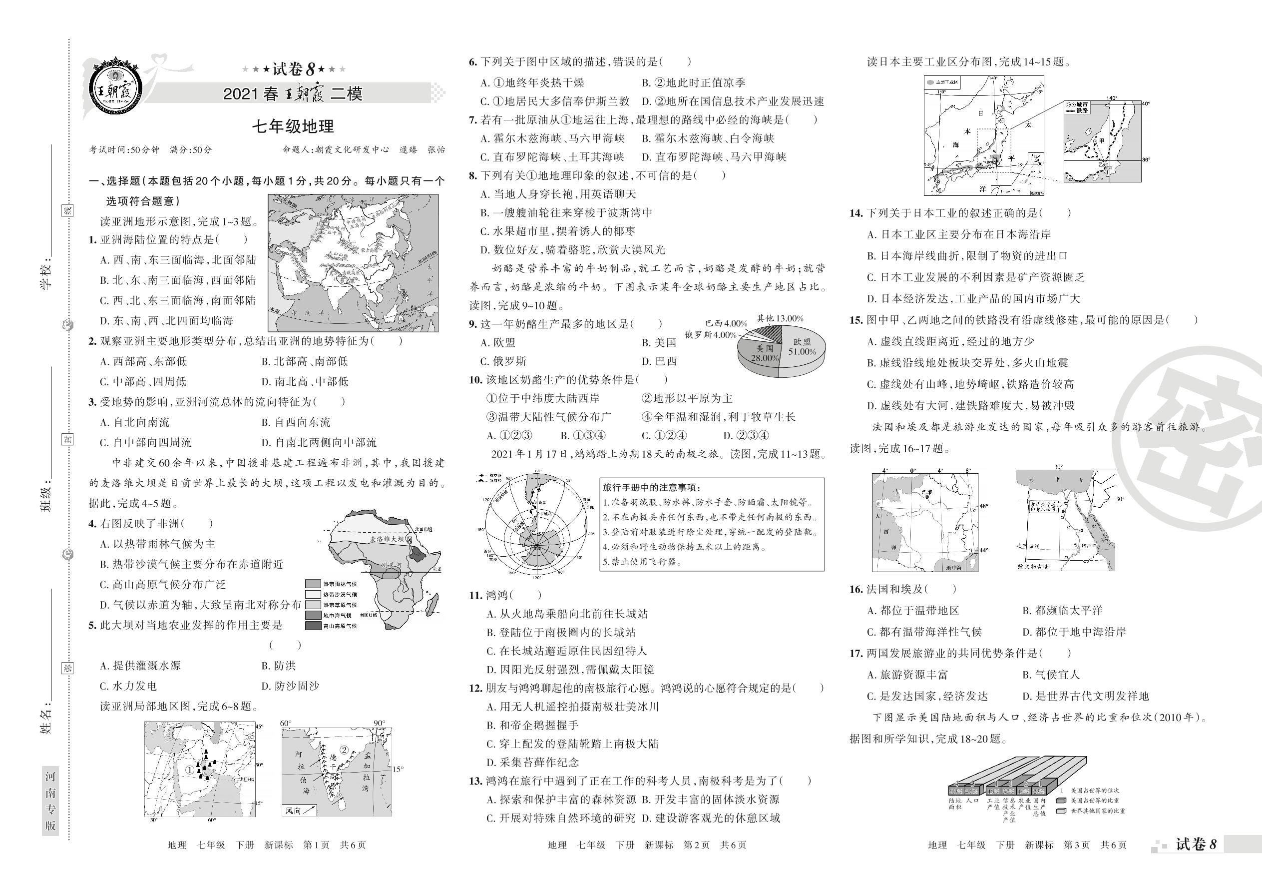 王朝霞期末模拟卷七年级下册地理(新课版)_R210810134453【8】