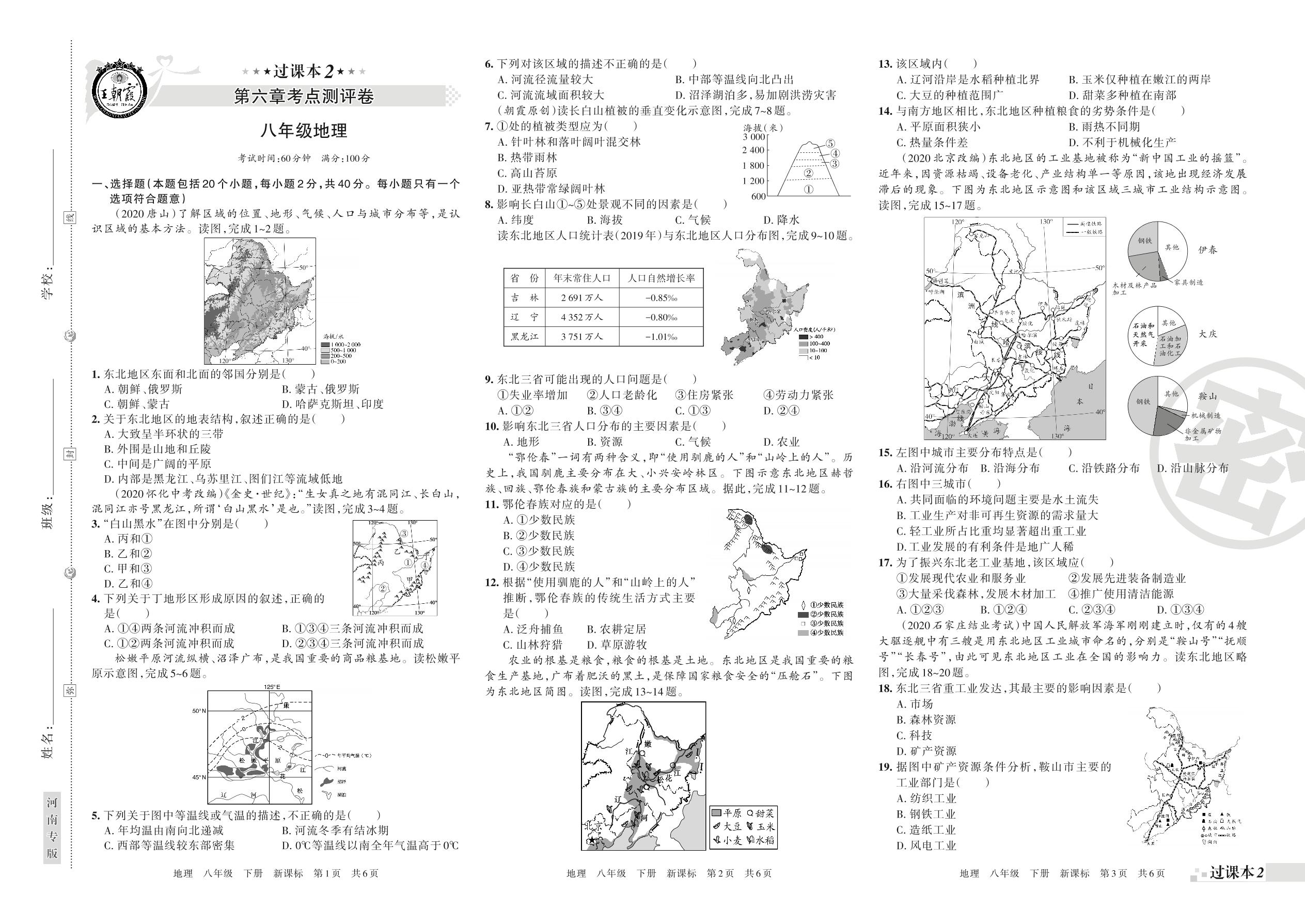 王朝霞期末过课本——第六章考点测评卷八年级下册地理(新课版)【0】