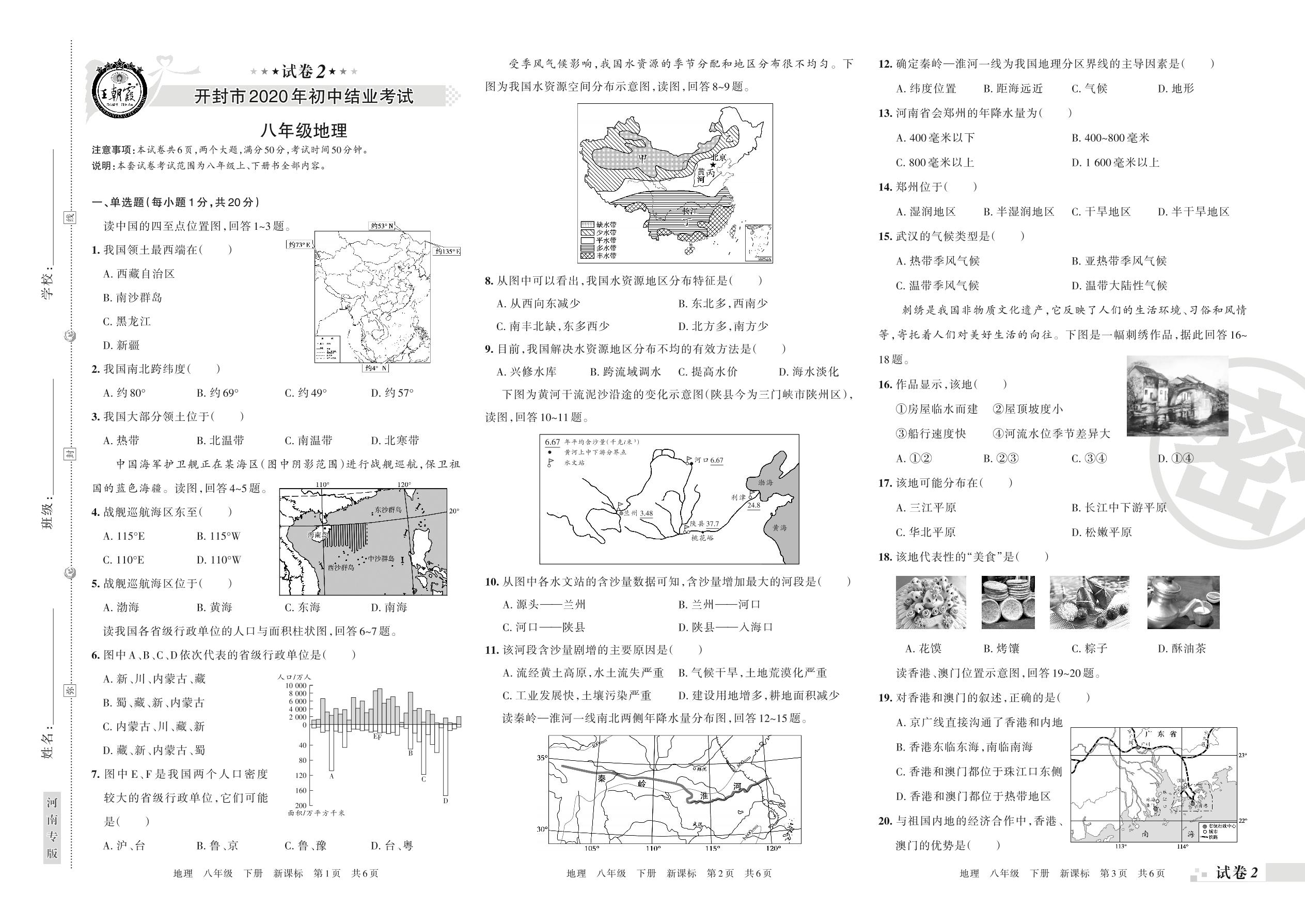 2019-2020学年第二学期开封市八年级地理试卷(新课版)【2】