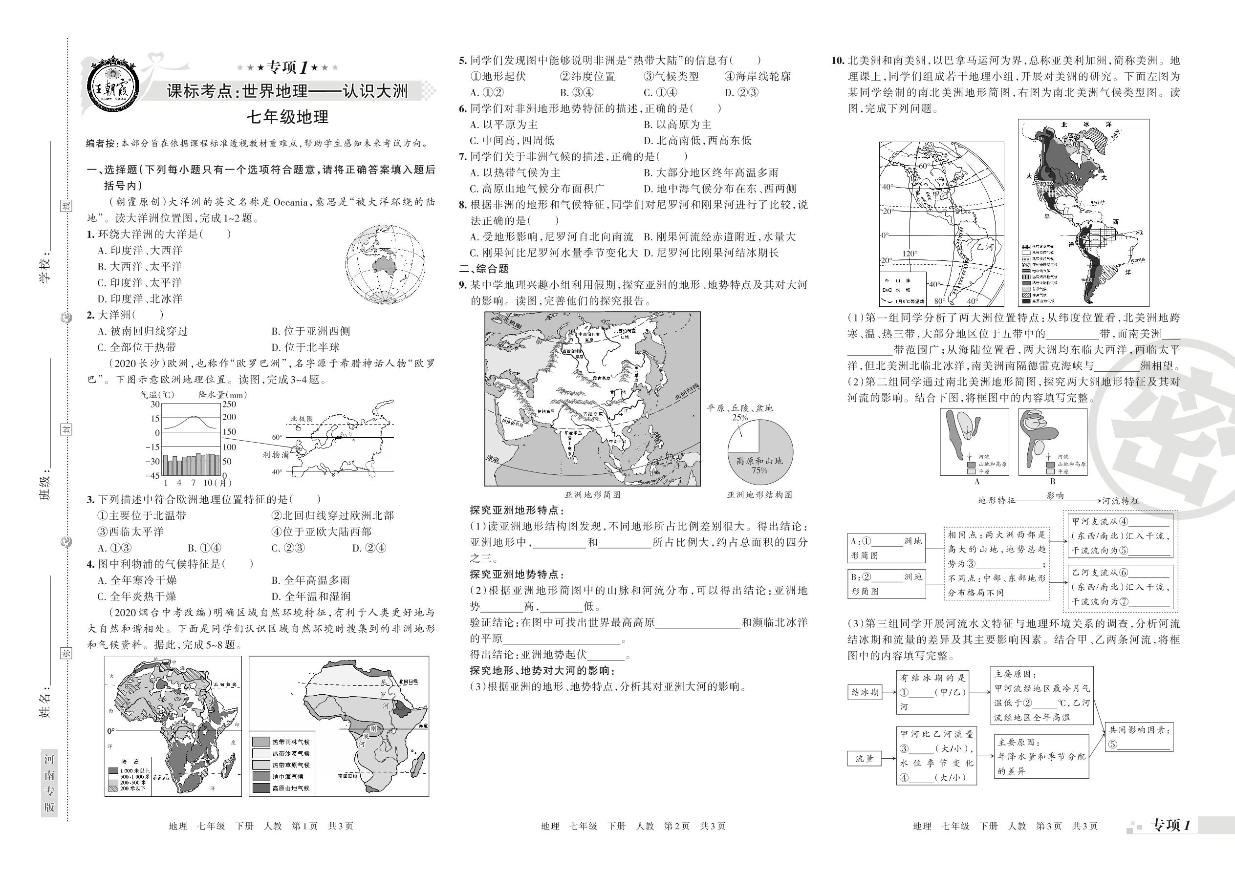 王朝霞期末专项卷——认识大洲、认识地区七年级下册地理(人教版)【0】