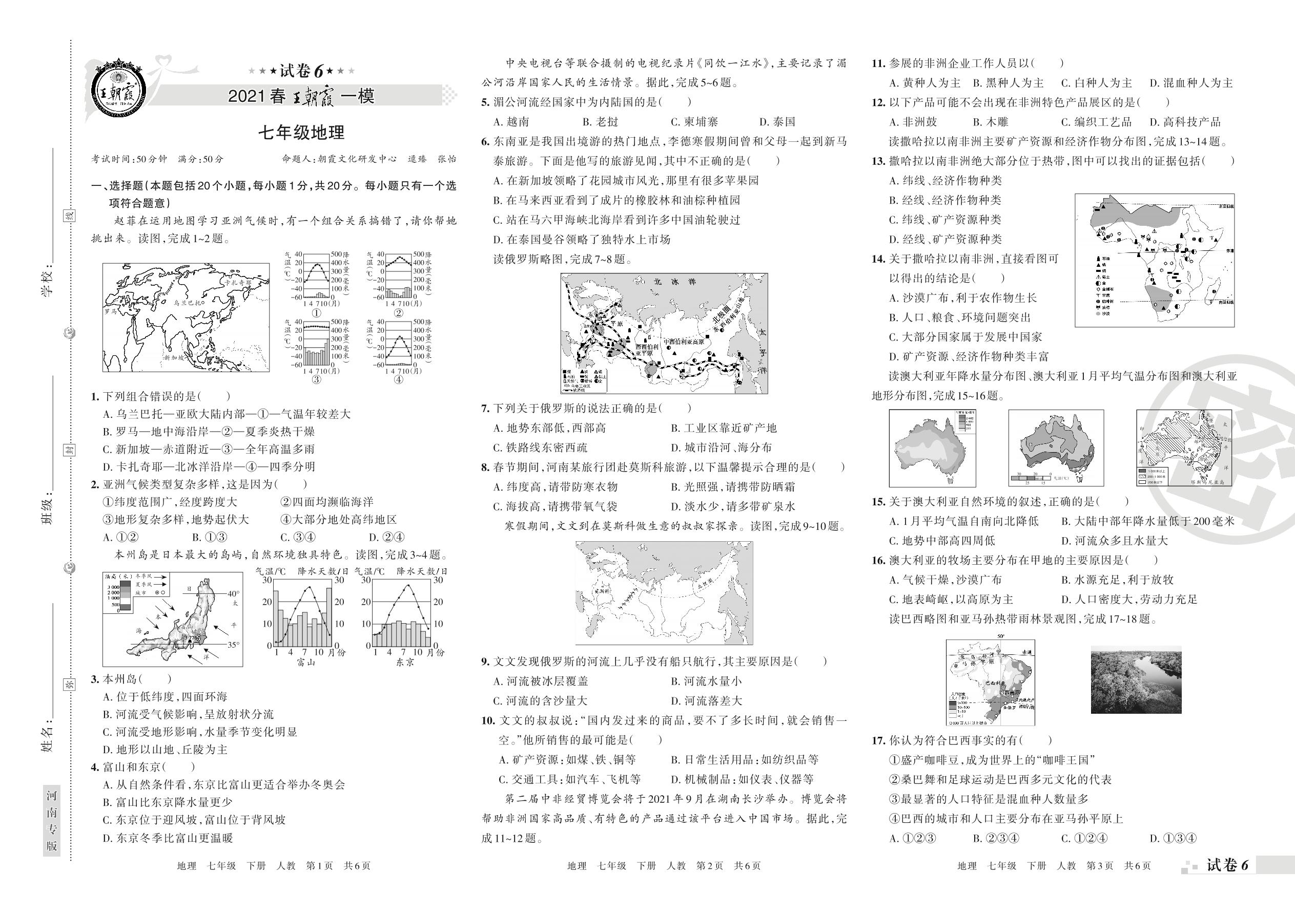 王朝霞期末模拟卷七年级下册地理(人教版)_R210810134854【6】