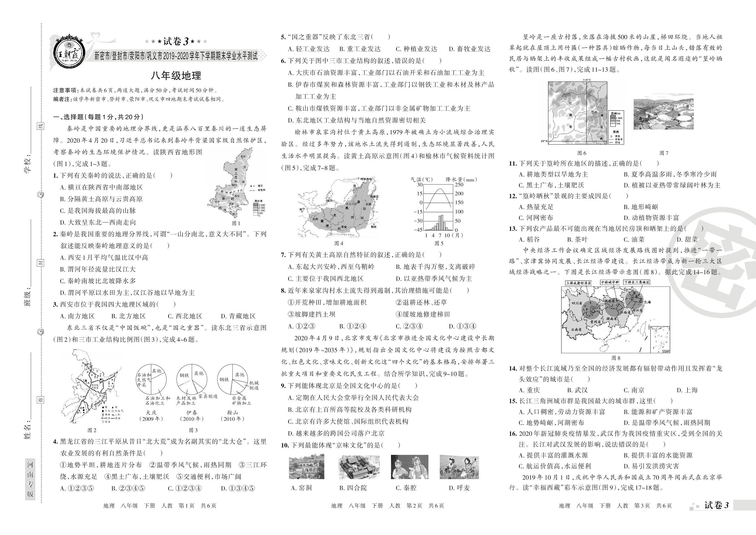 2019-2020学年第二学期新密市、登封市、荥阳市、巩义市八年级地理试卷(人教版)【3】