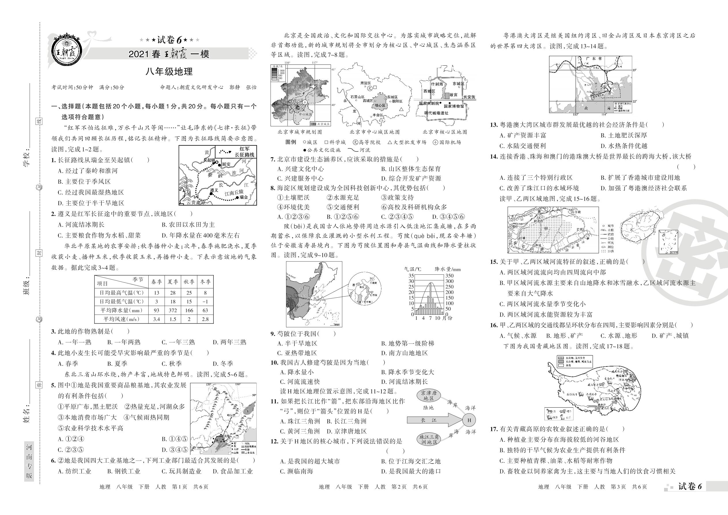 王朝霞期末模拟卷八年级下册地理(人教版)_R210810135055【6】