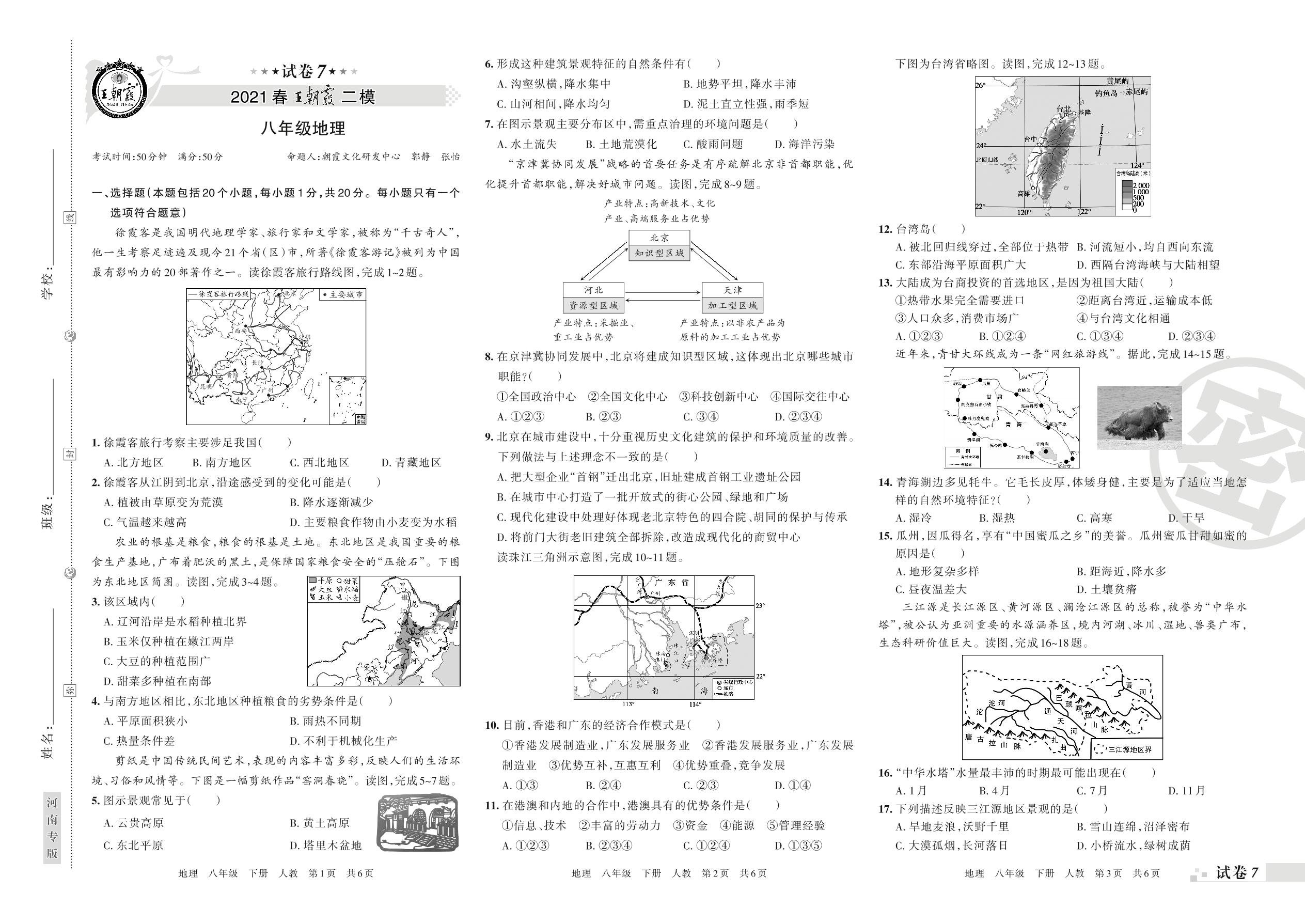 王朝霞期末模拟卷八年级下册地理(人教版)_R210810135103【7】