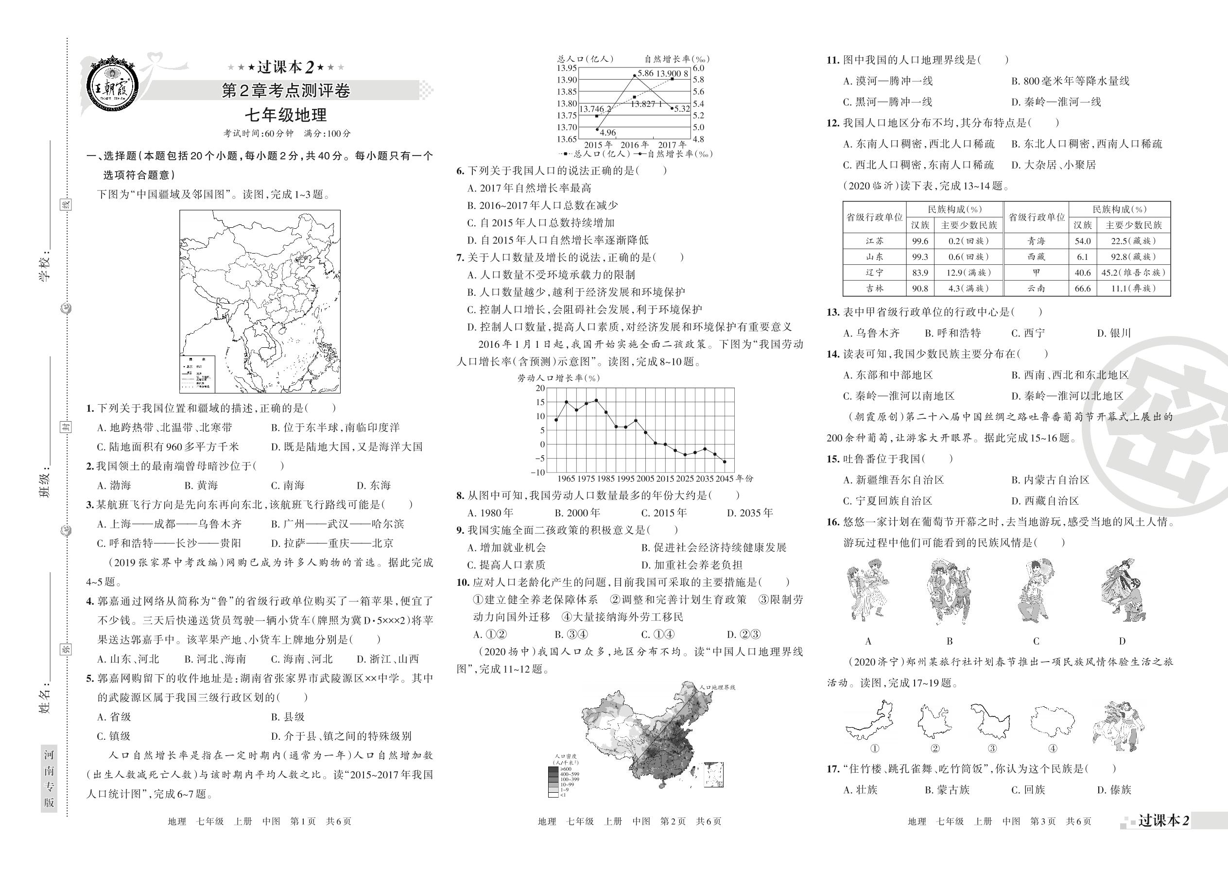 王朝霞期末过课本——第2章考点测评七年级上册地理(中图版)【0】