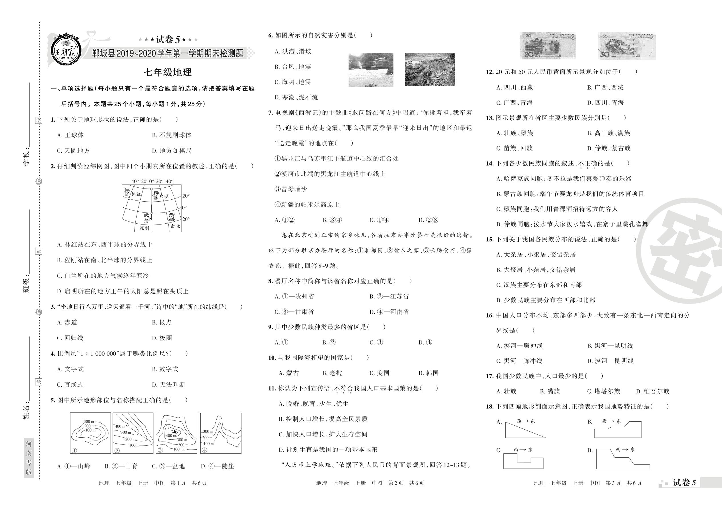2019-2020学年第一学期周口市郸城县七年级地理试卷(中图版)【5】
