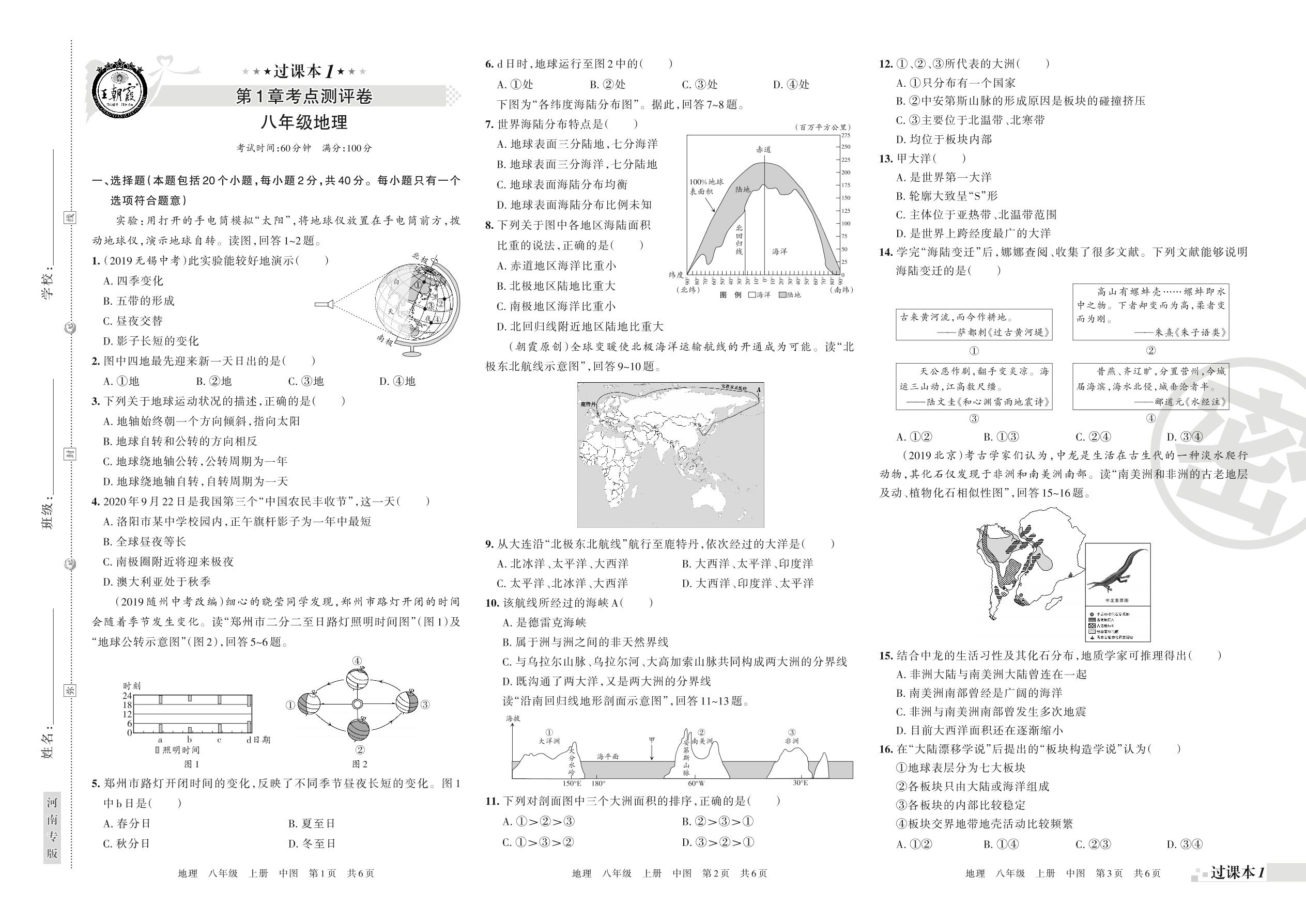 王朝霞期末过课本——第1章考点测评八年级上册地理(中图版)【0】