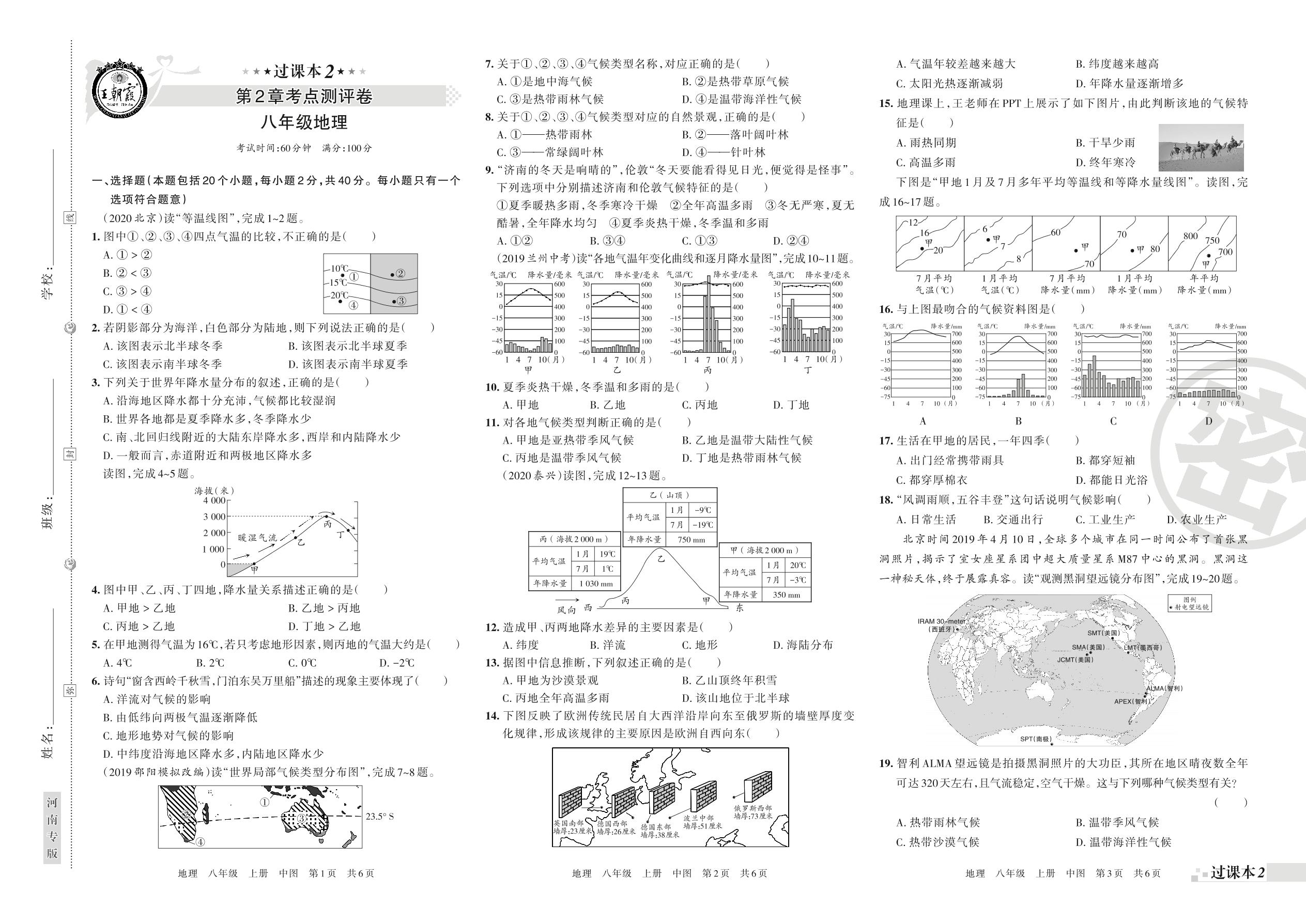 王朝霞期末过课本——第2章考点测评八年级上册地理(中图版)【0】