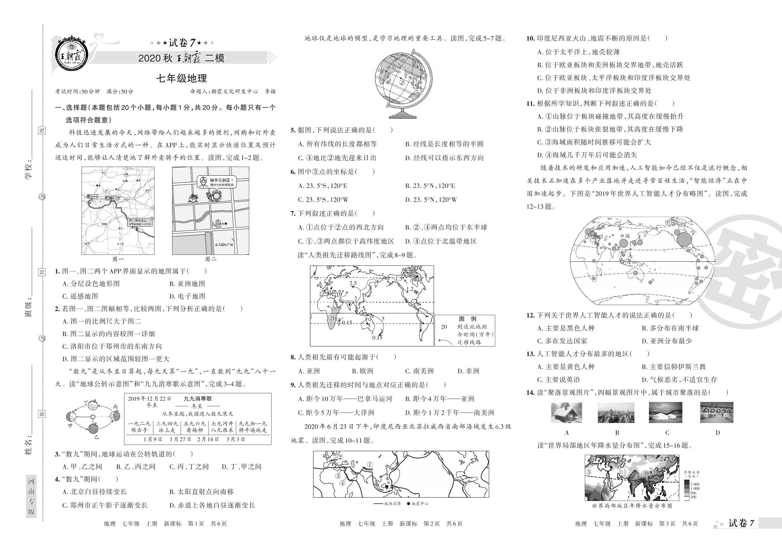 王朝霞期末模拟卷七年级上册地理(湘教版)【7】