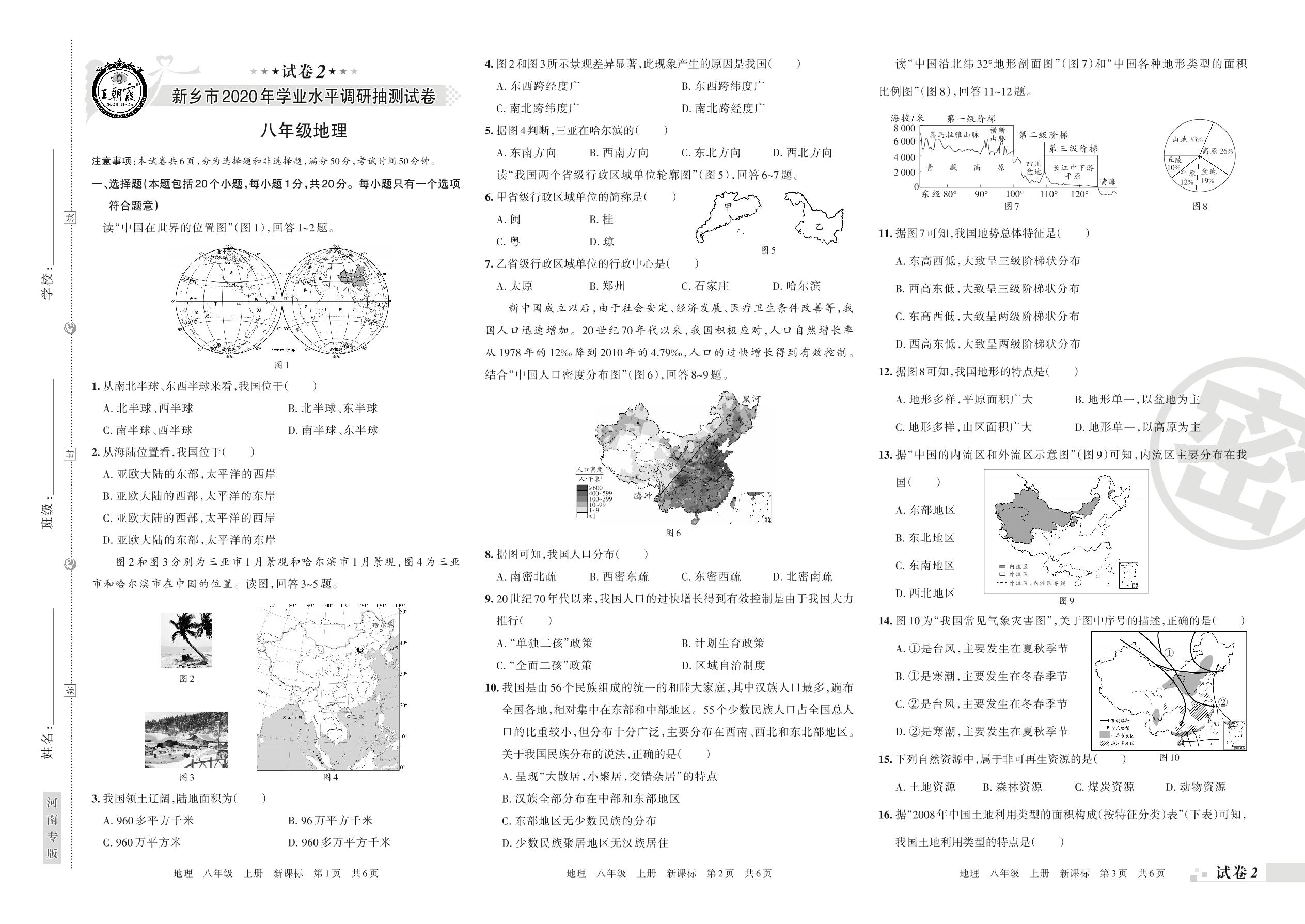 2019-2020学年第一学期新乡市八年级地理试卷(湘教版)【2】