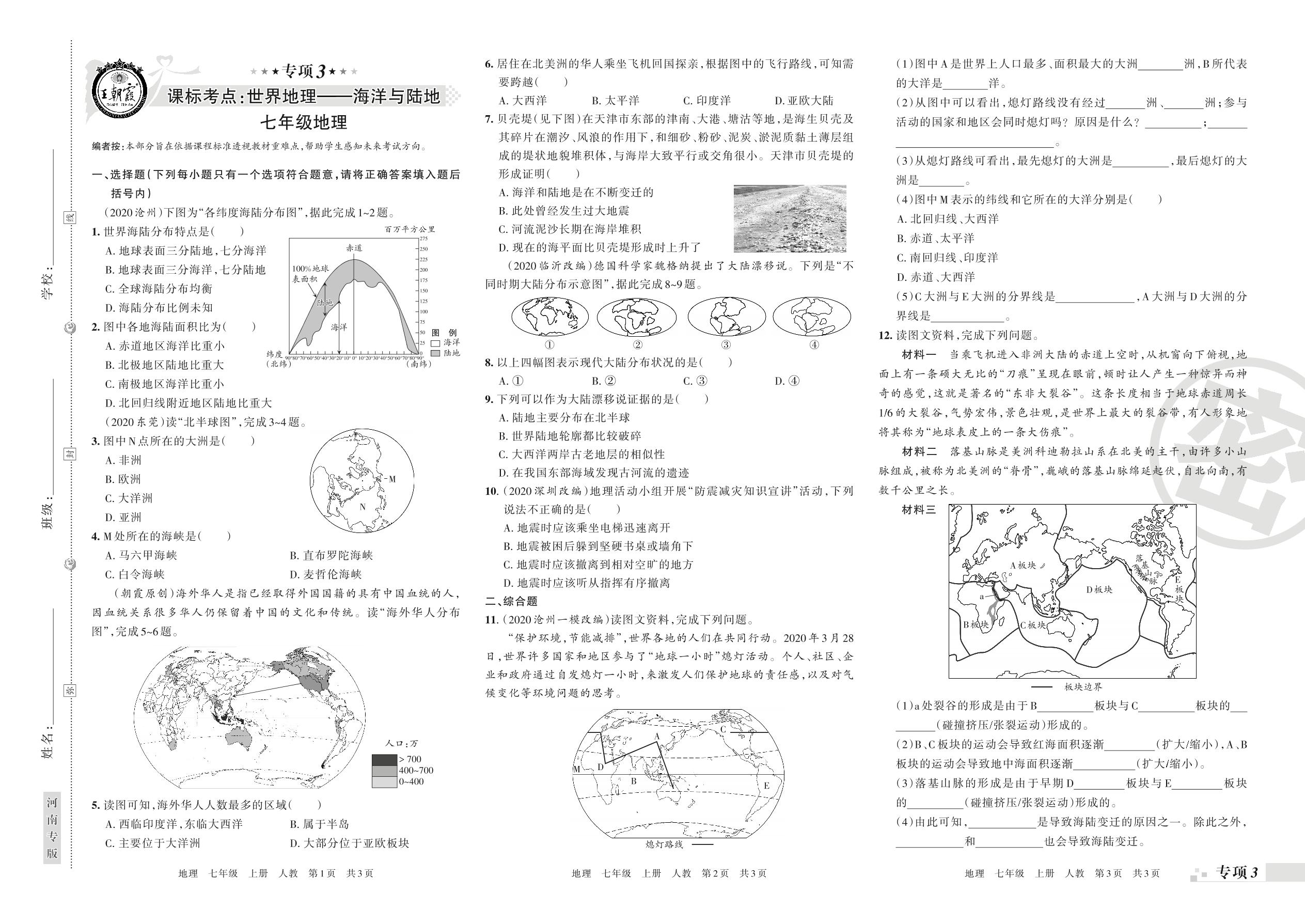 王朝霞期末专项卷——课标考点:海洋与陆地、气候七年级上册地理(人教版)【0】