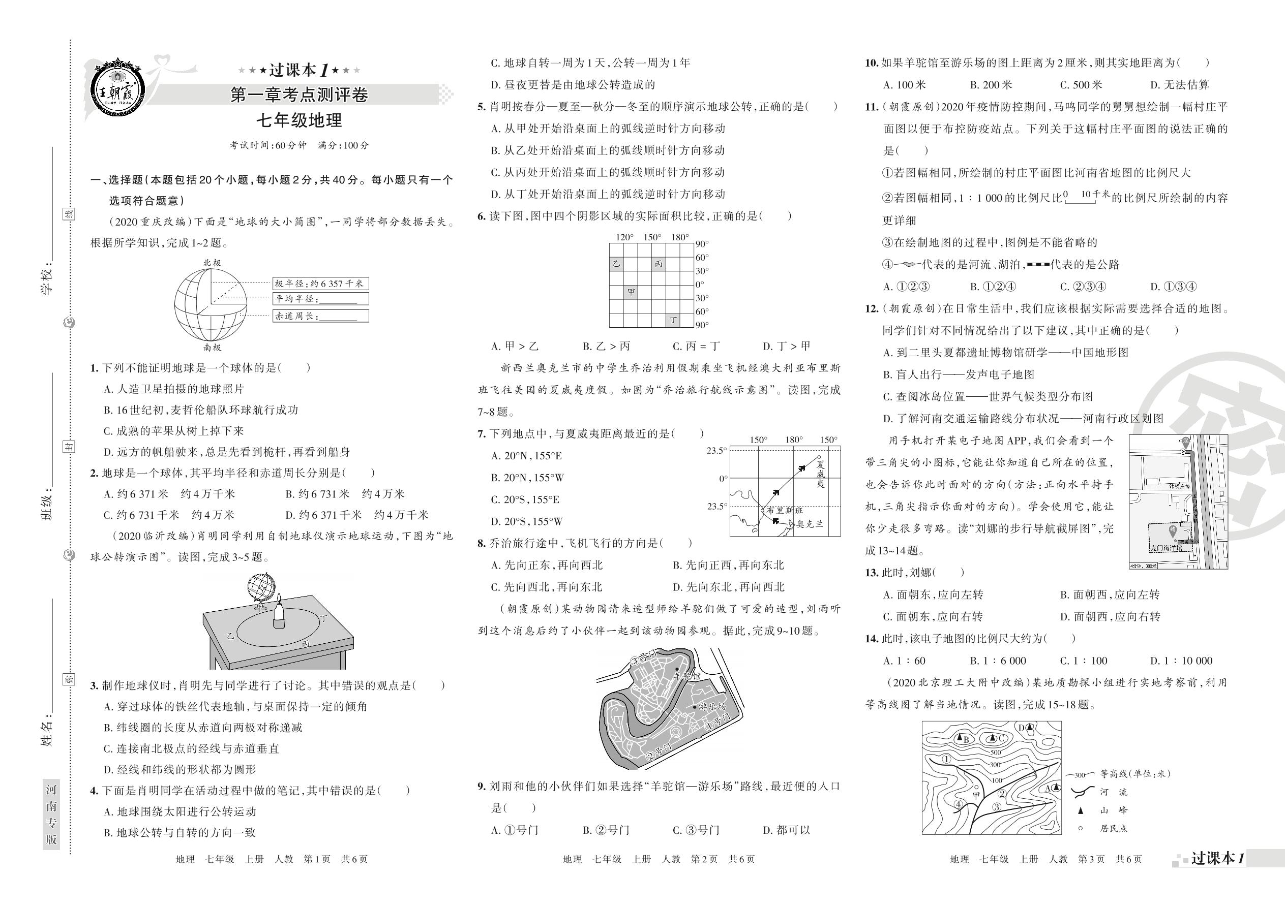 王朝霞期末过课本——第一章考点测评七年级上册地理(人教版)【0】
