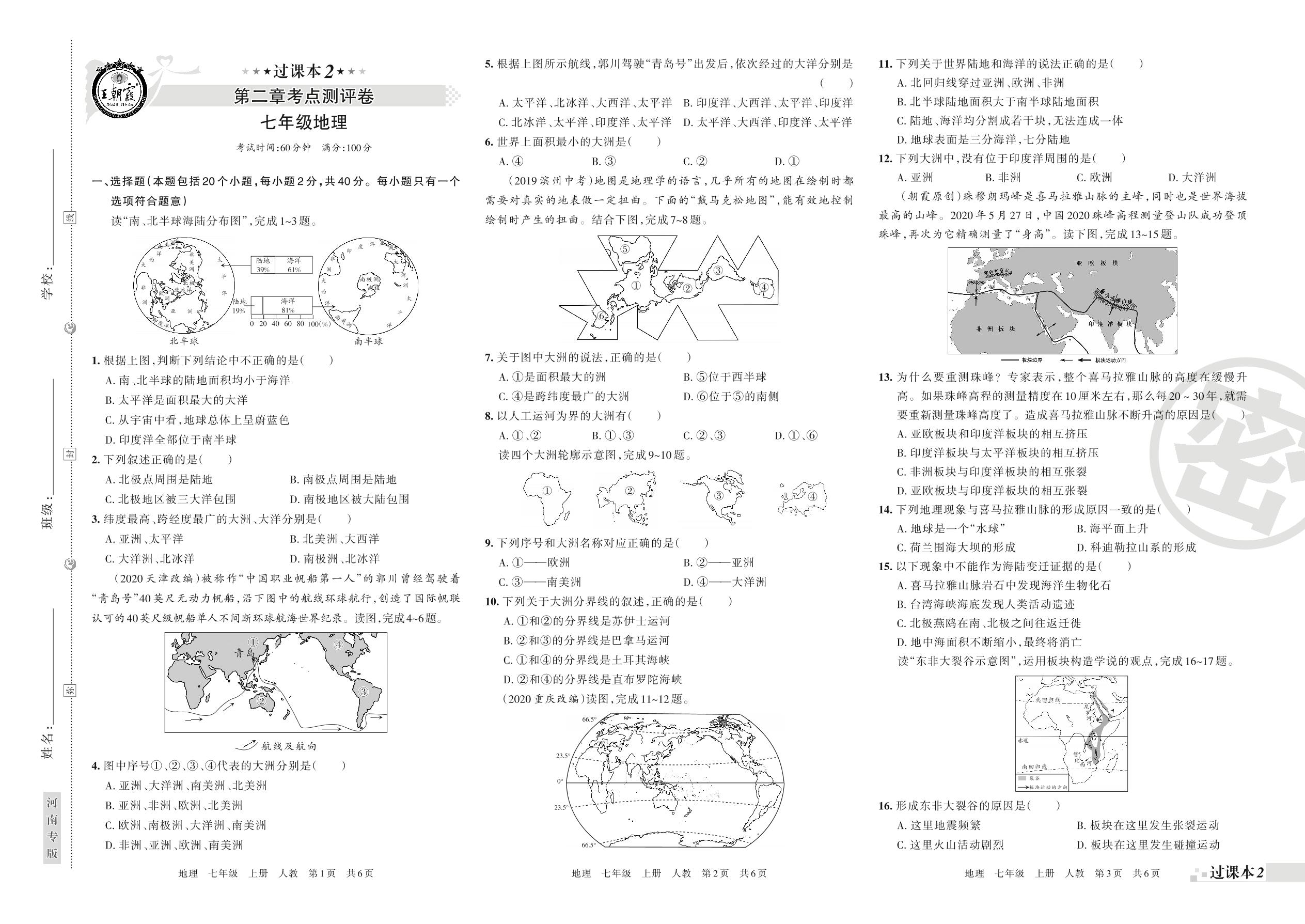 王朝霞期末过课本——第二章考点测评七年级上册地理(人教版)【0】