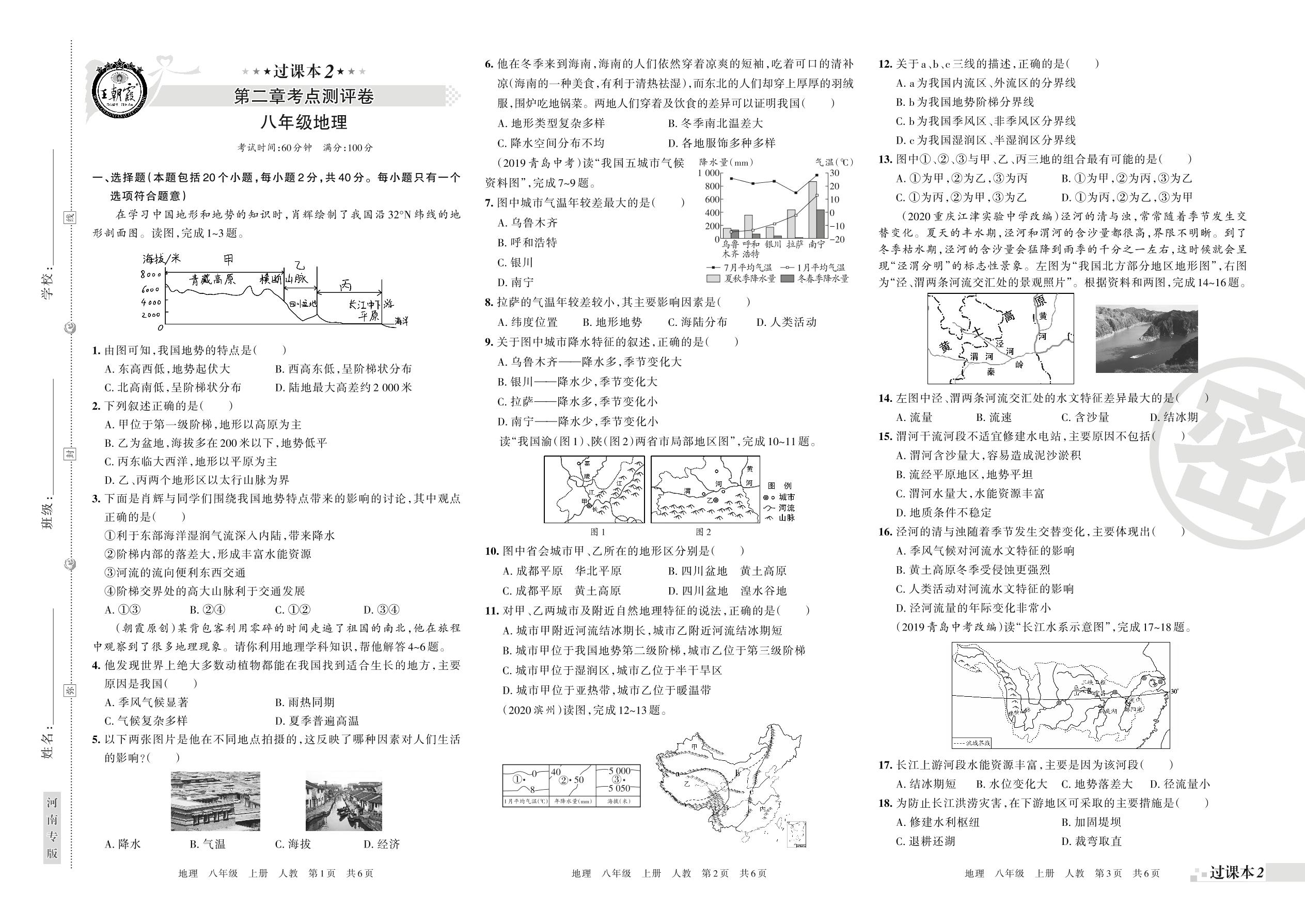 王朝霞期末过课本——第二章考点测评八年级上册地理(人教版)【0】