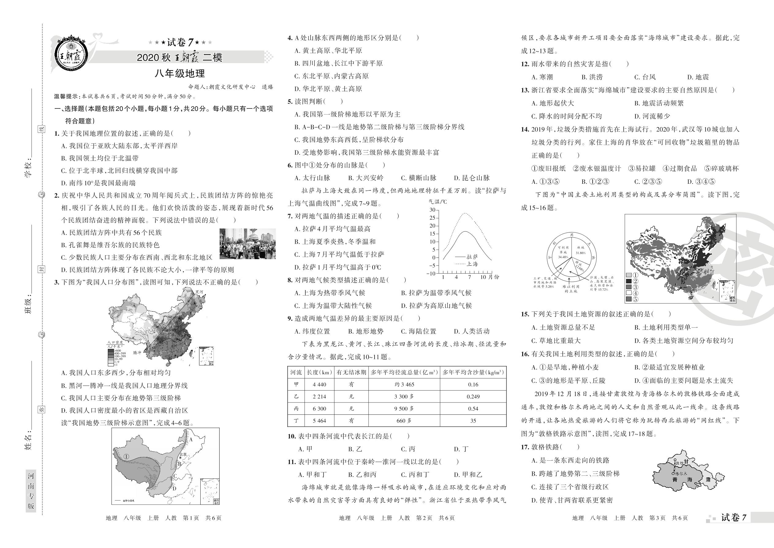 王朝霞期末模拟卷八年级上册地理(人教版)_R210810140039【7】