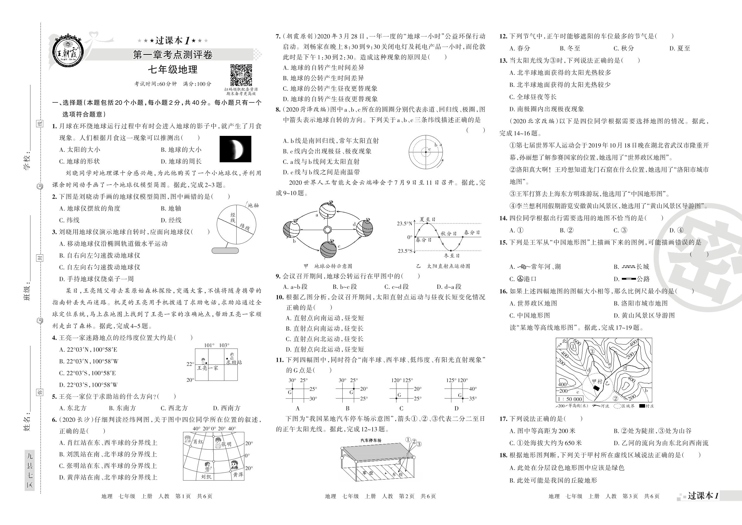 王朝霞期末过课本——第一章考点测评七年级上册地理(人教版)_R210810140048【0】