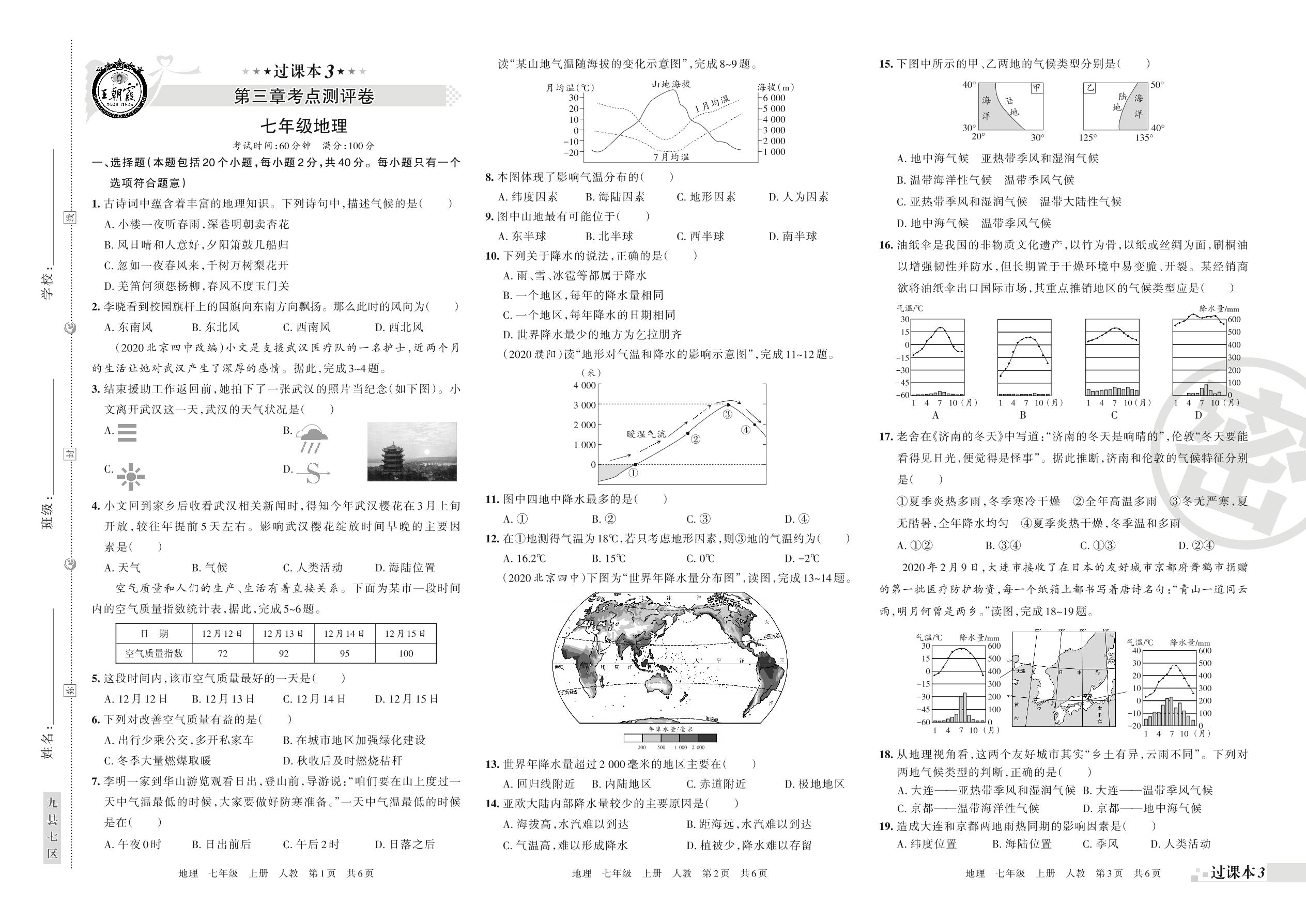 王朝霞期末过课本——第三章考点测评七年级上册地理(人教版)_R210810140102【0】