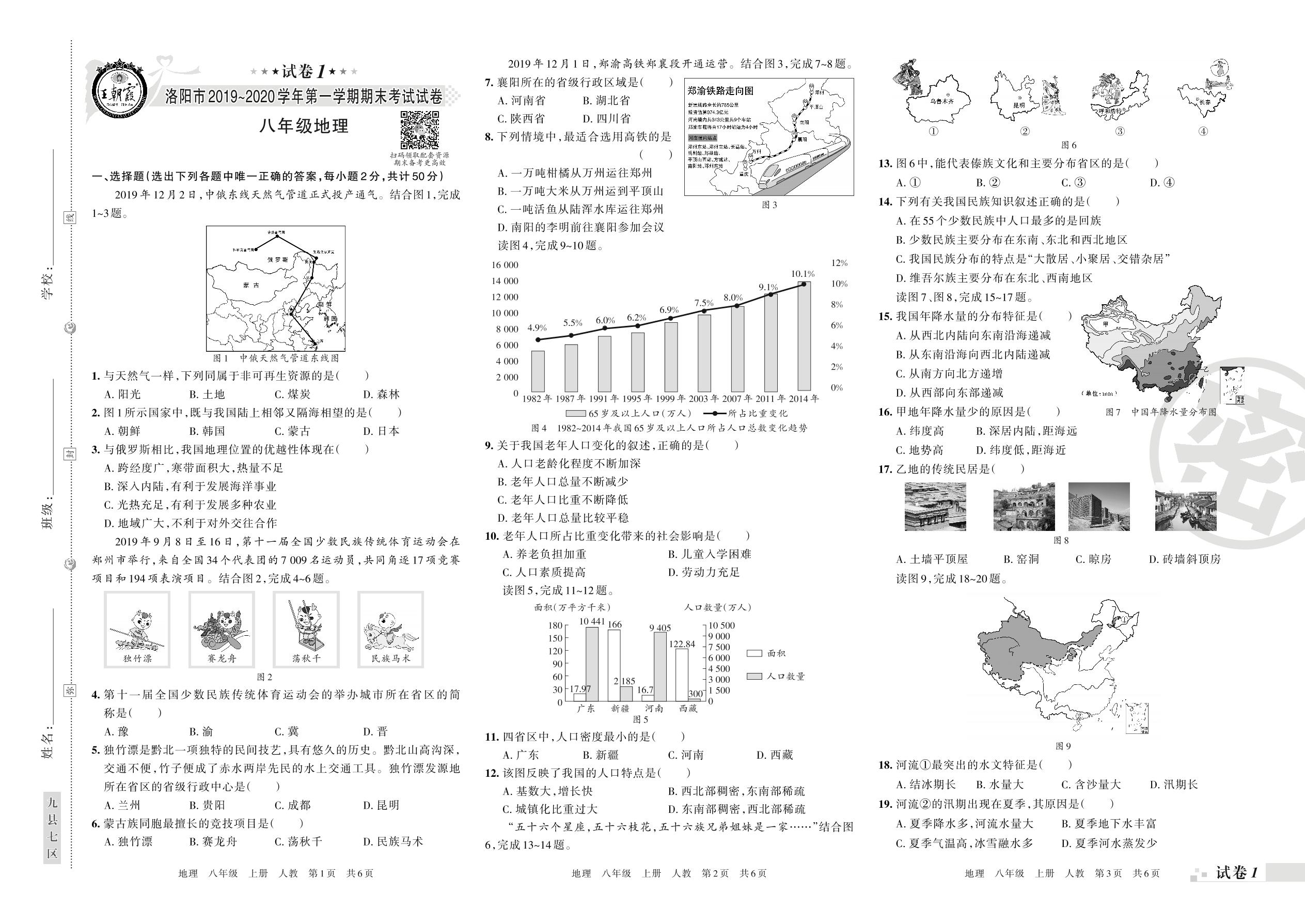 2019-2020学年第一学期洛阳市八年级地理试卷(人教版)【1】