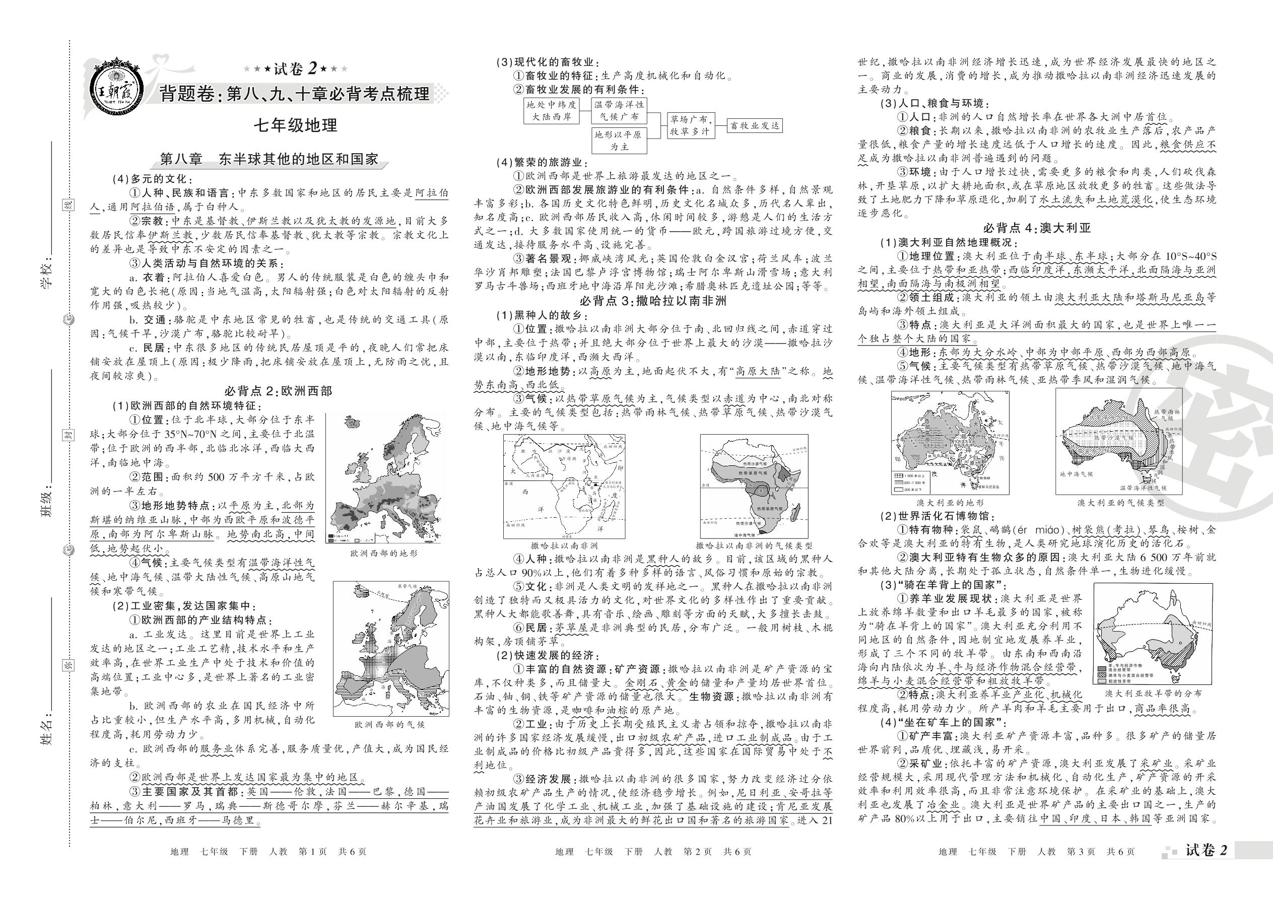王朝霞期末背题卷——第八、九、十章必背考点梳理七年级下册地理(人教版)【2】