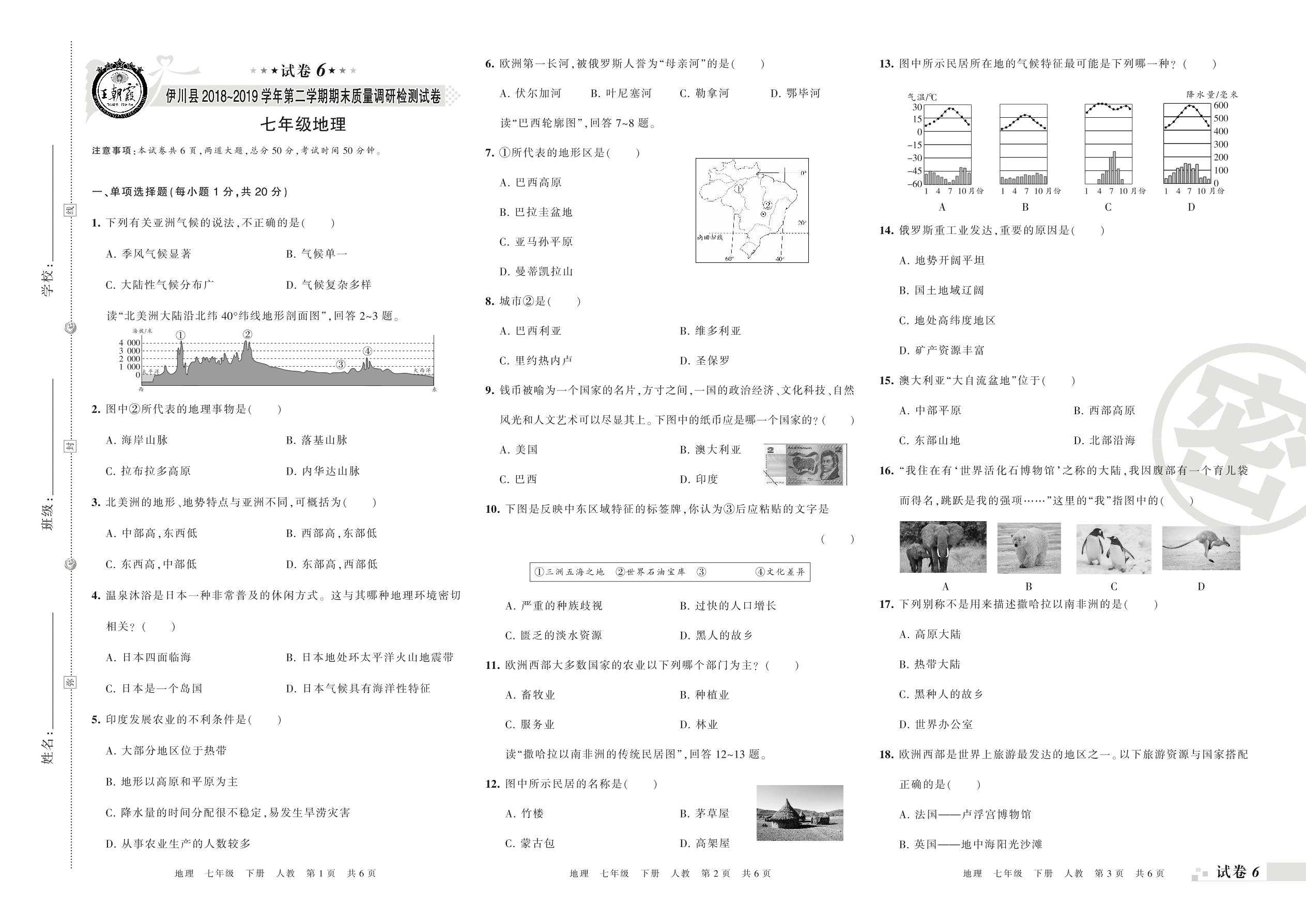 2018-2019学年第二学期洛阳市伊川县七年级地理试卷(人教版)【6】