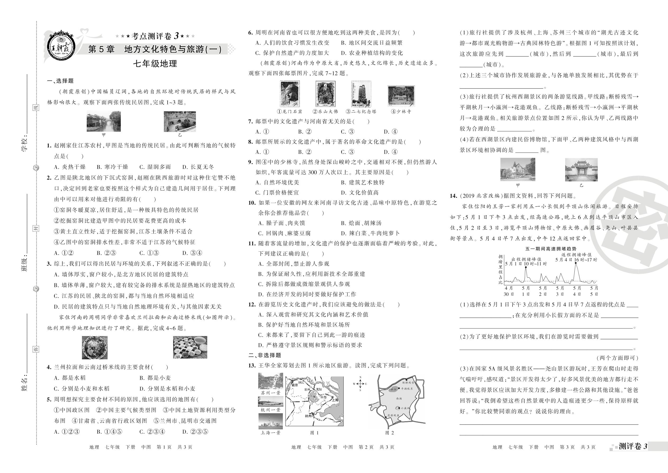 王朝霞期末测评卷——第5章 地方文化特色与旅游(一)(二)七年级下册地理(中图版)【0】