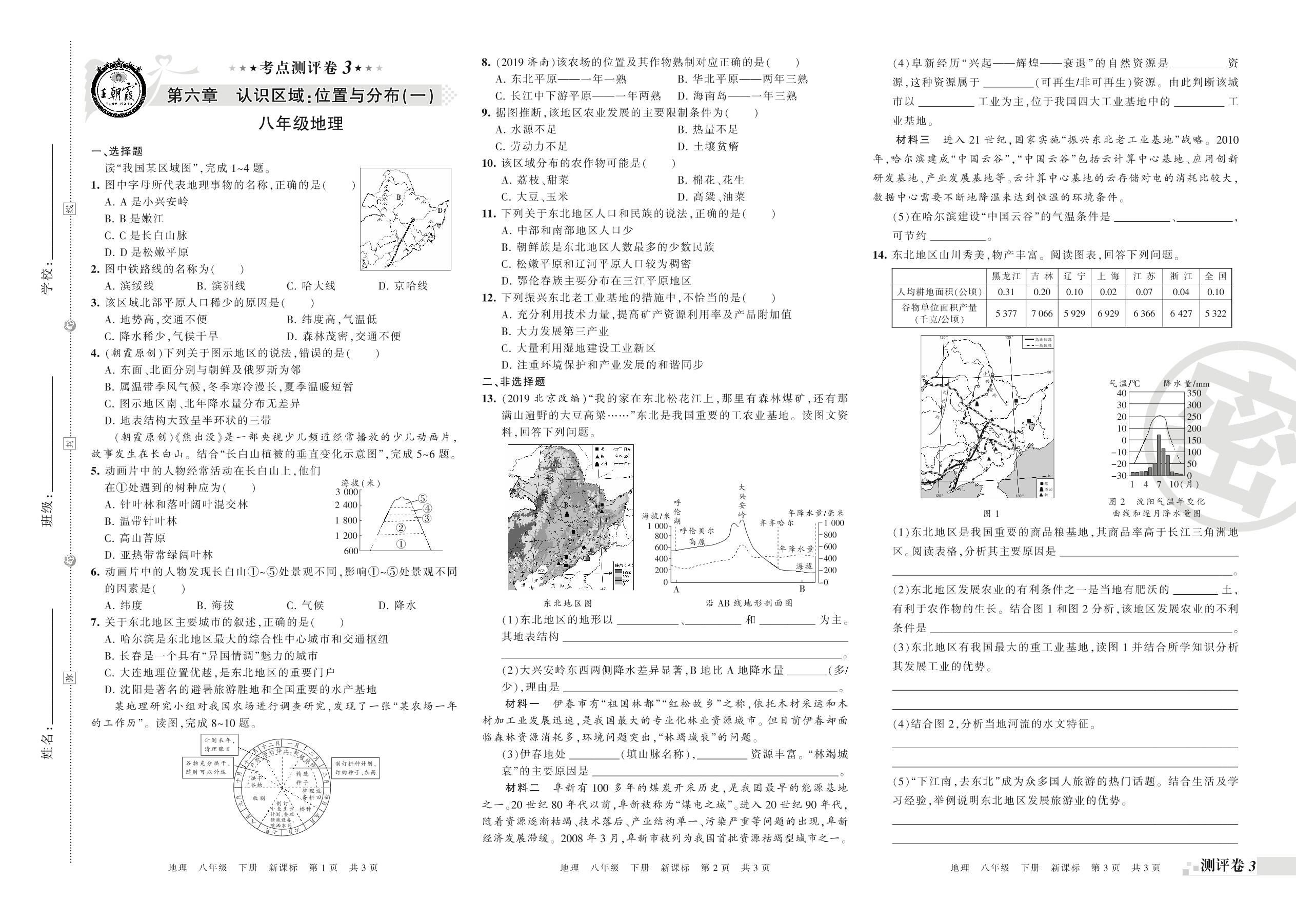 王朝霞期末测评卷——第六章 认识区域:位置与分布(一)(二)八年级下册地理(新课标版)【0】