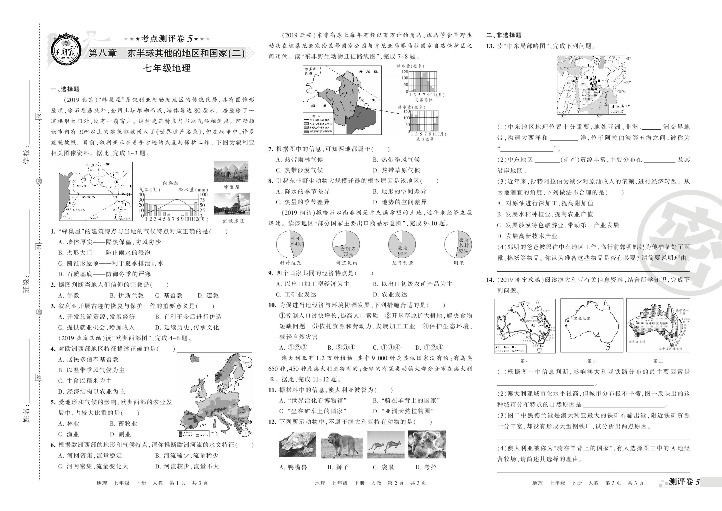 王朝霞期末测评卷——第八章 东半球其他的地区和国家(二)、第九章 西半球的国家(一)七年级下册地理(人教版)【0】