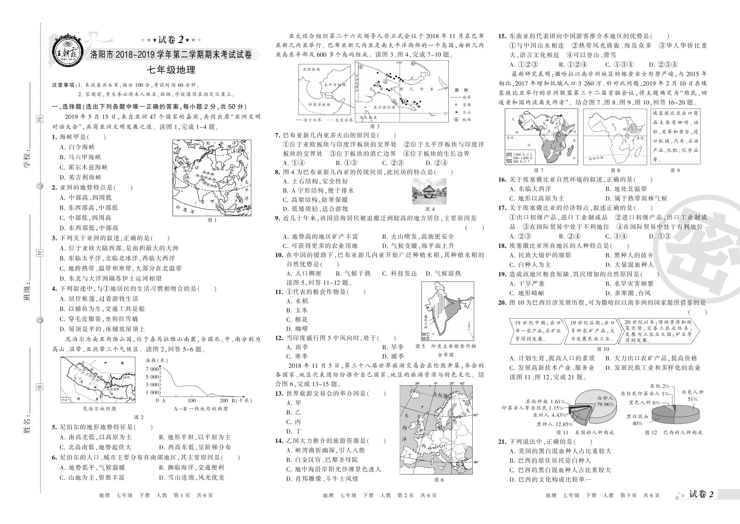 2018-2019学年第二学期洛阳市七年级地理试卷(人教版)【2】