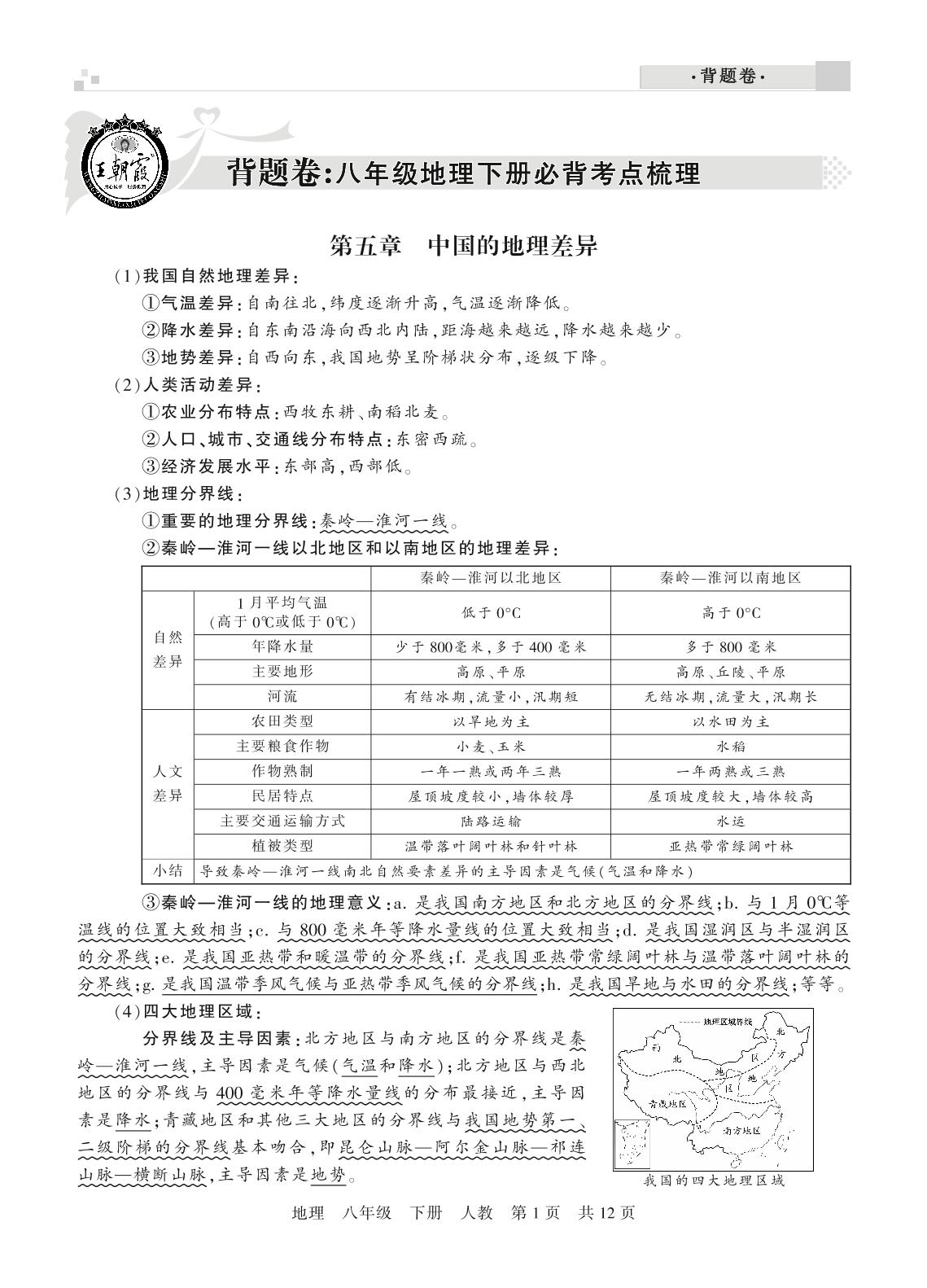 王朝霞期末背题卷——必背考点梳理八年级下册地理(人教版)_R210810141832【0】