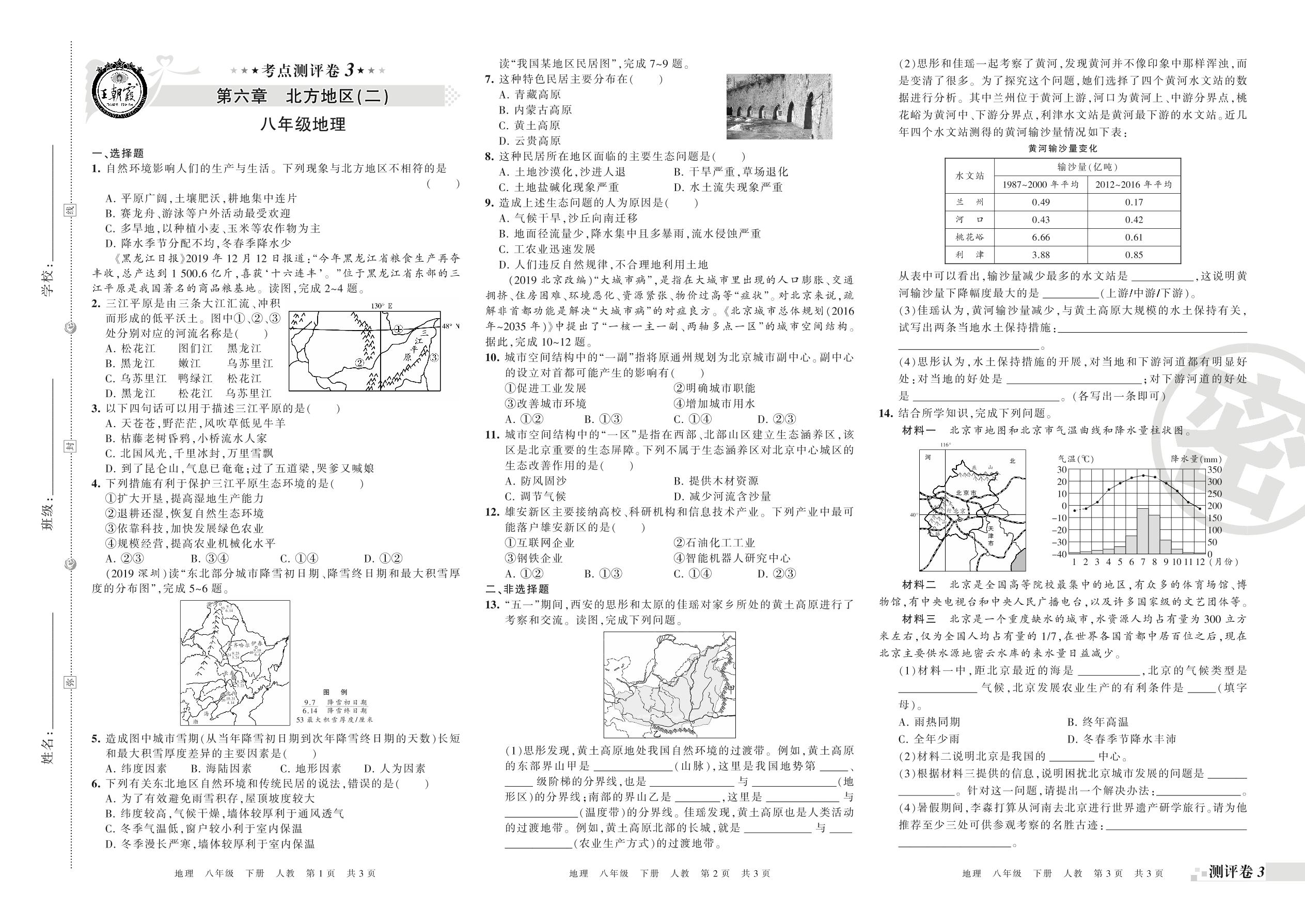 王朝霞期末测评卷——第六章 北方地区(二)、第七章 南方地区(一)八年级下册地理(人教版)【0】