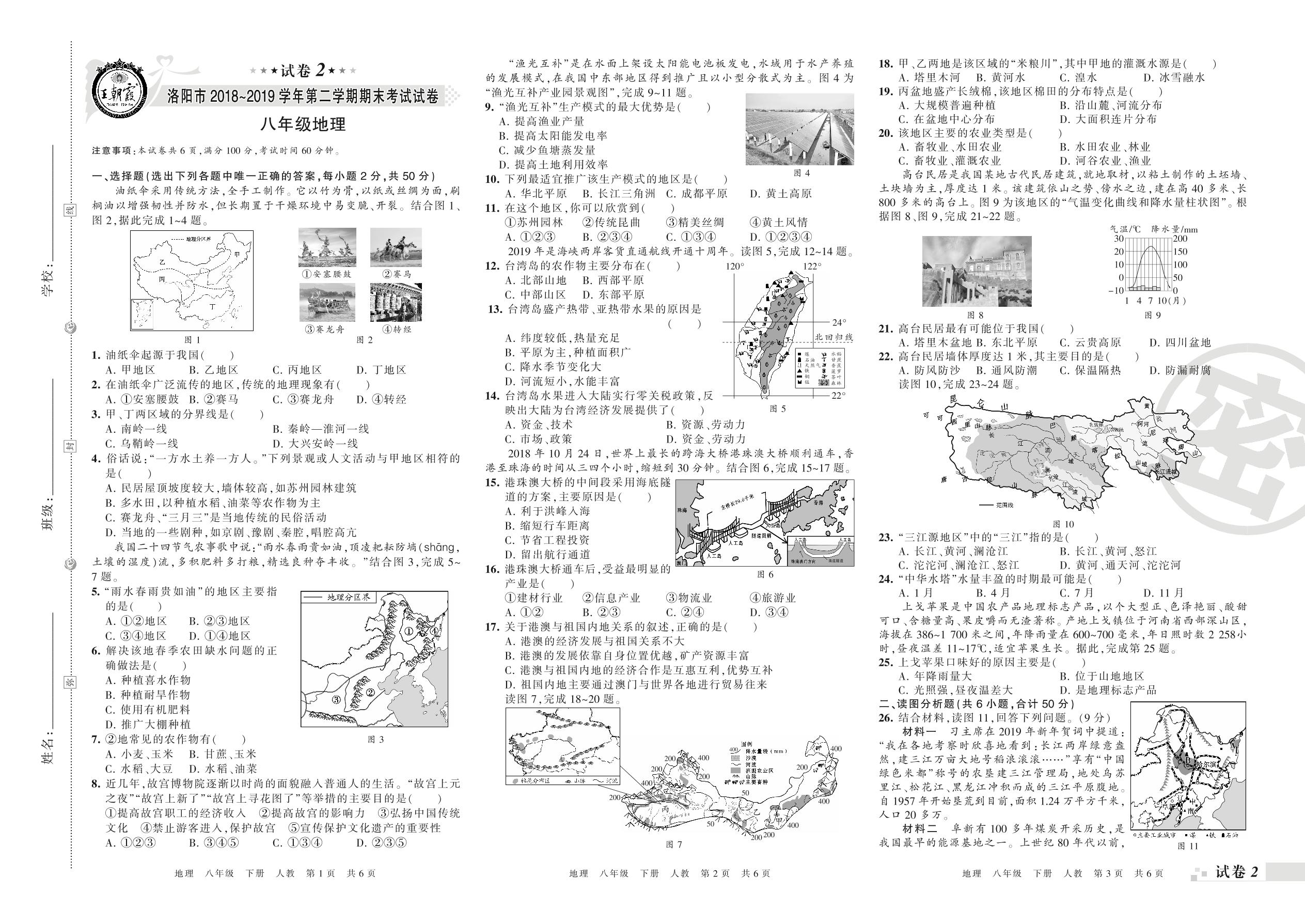 2018-2019学年第二学期洛阳市八年级地理试卷(人教版)【2】