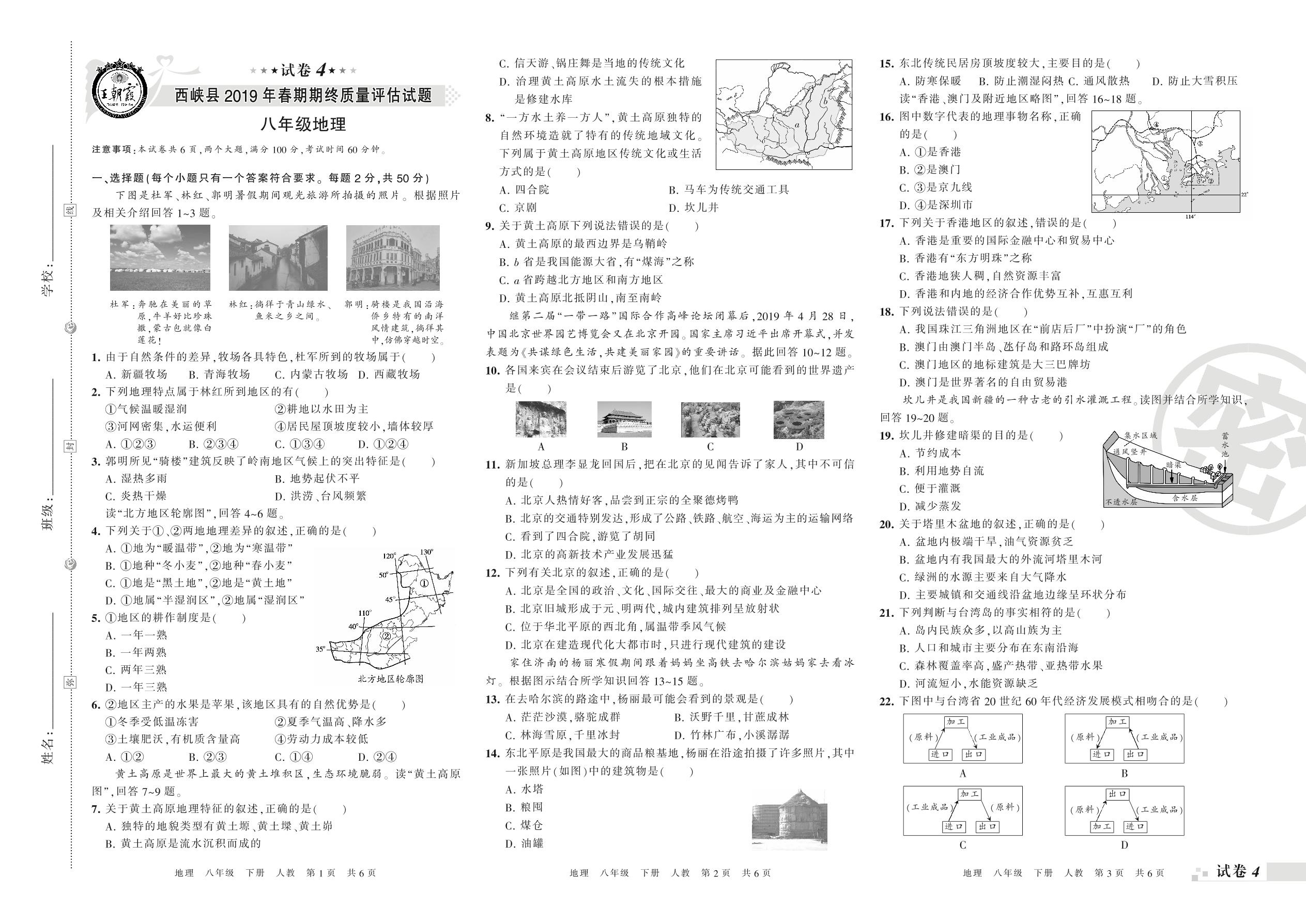 2018-2019学年第二学期南阳市西峡县八年级地理试卷(人教版)【4】