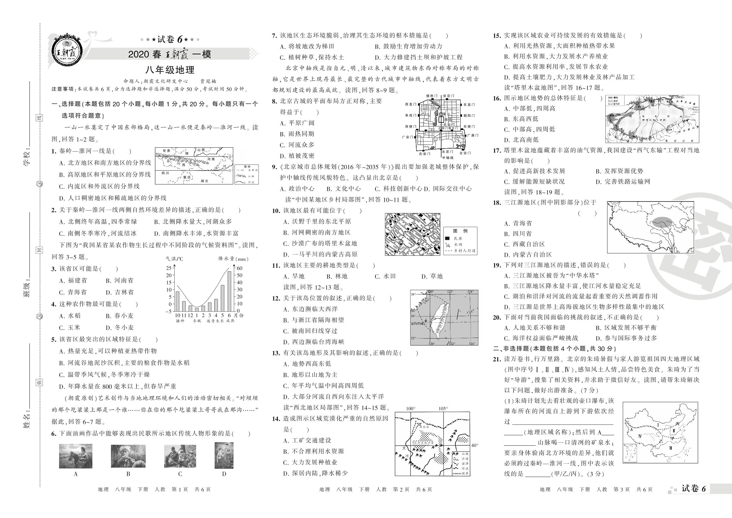 王朝霞期末模拟卷八年级下册地理(人教版)_R210810141947【6】