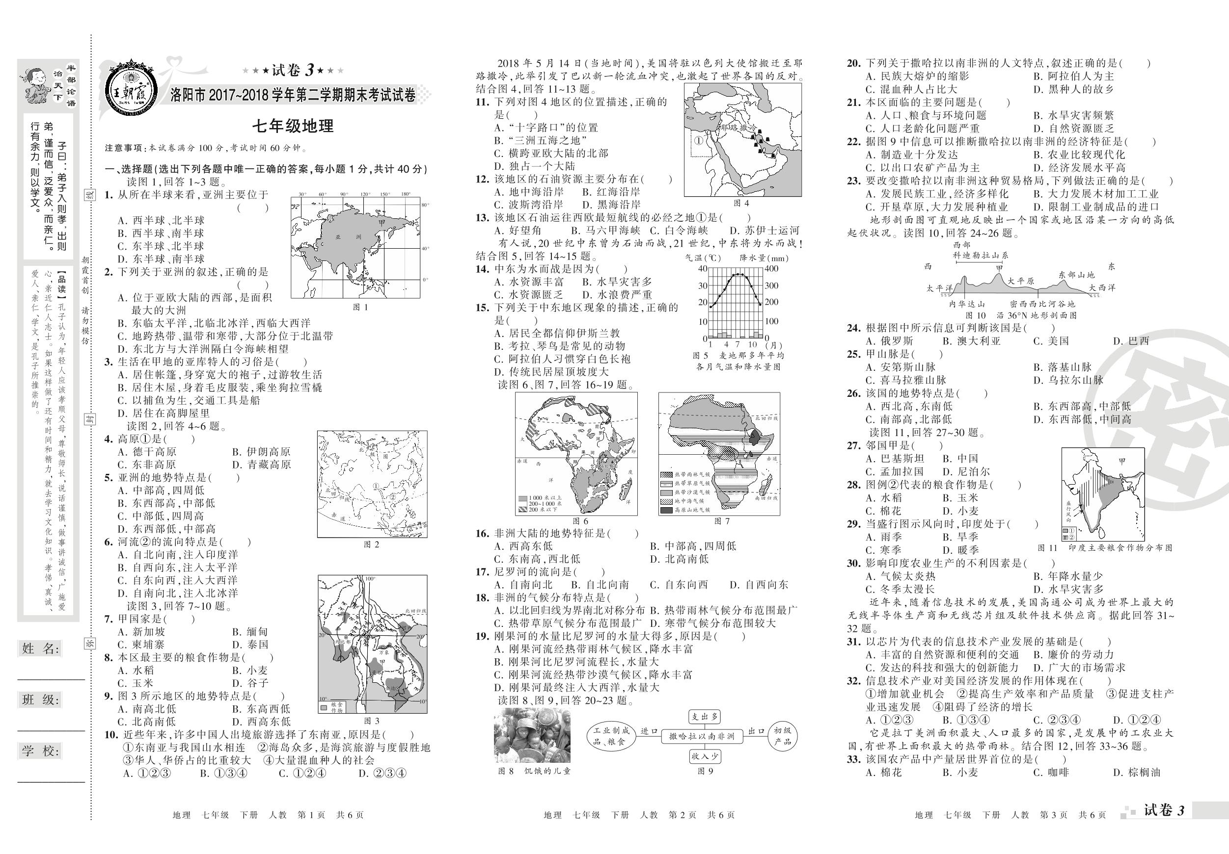2017-2018学年第二学期洛阳市七年级地理试卷(人教版)【3】